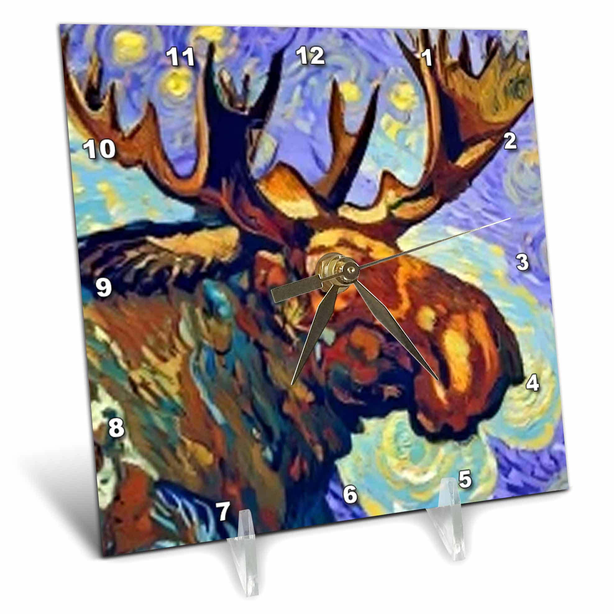 Desk Clock - Cool Colorful Moose Head in Van Gogh Starry Night Style Nature Art Animals