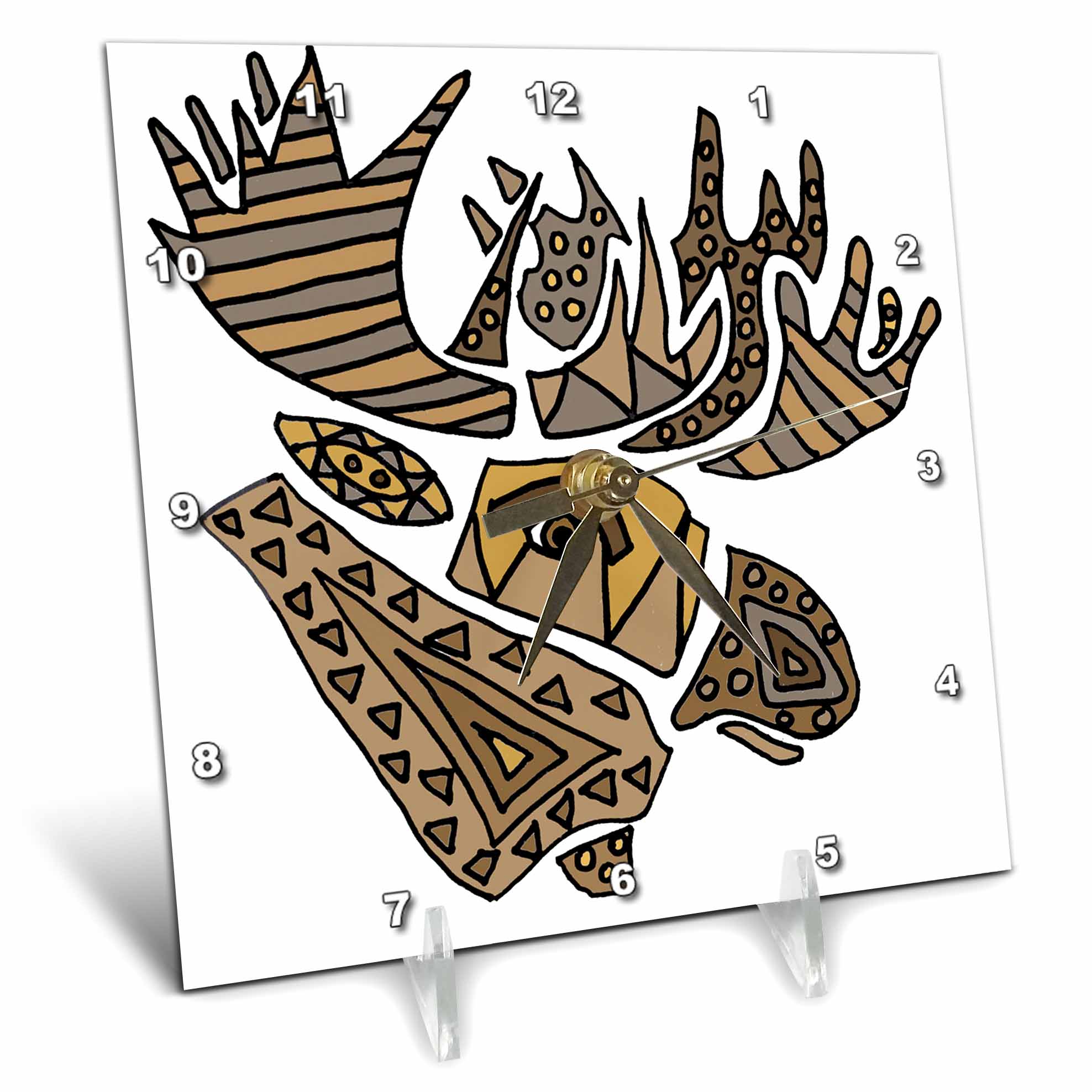 Cool Funny Cute Moose Head Abstract Art with Patterns Desk Clock is a wonderful complement to any room in your home or office. Made of durable high grade aluminum. This frame-less clock has a high gloss mirror like, UV coated, scratch resistant finish and is suitable for a moist environment. Measures 6" x 6" and requires one AA battery; not included. Battery box is not covered. Made in USA.