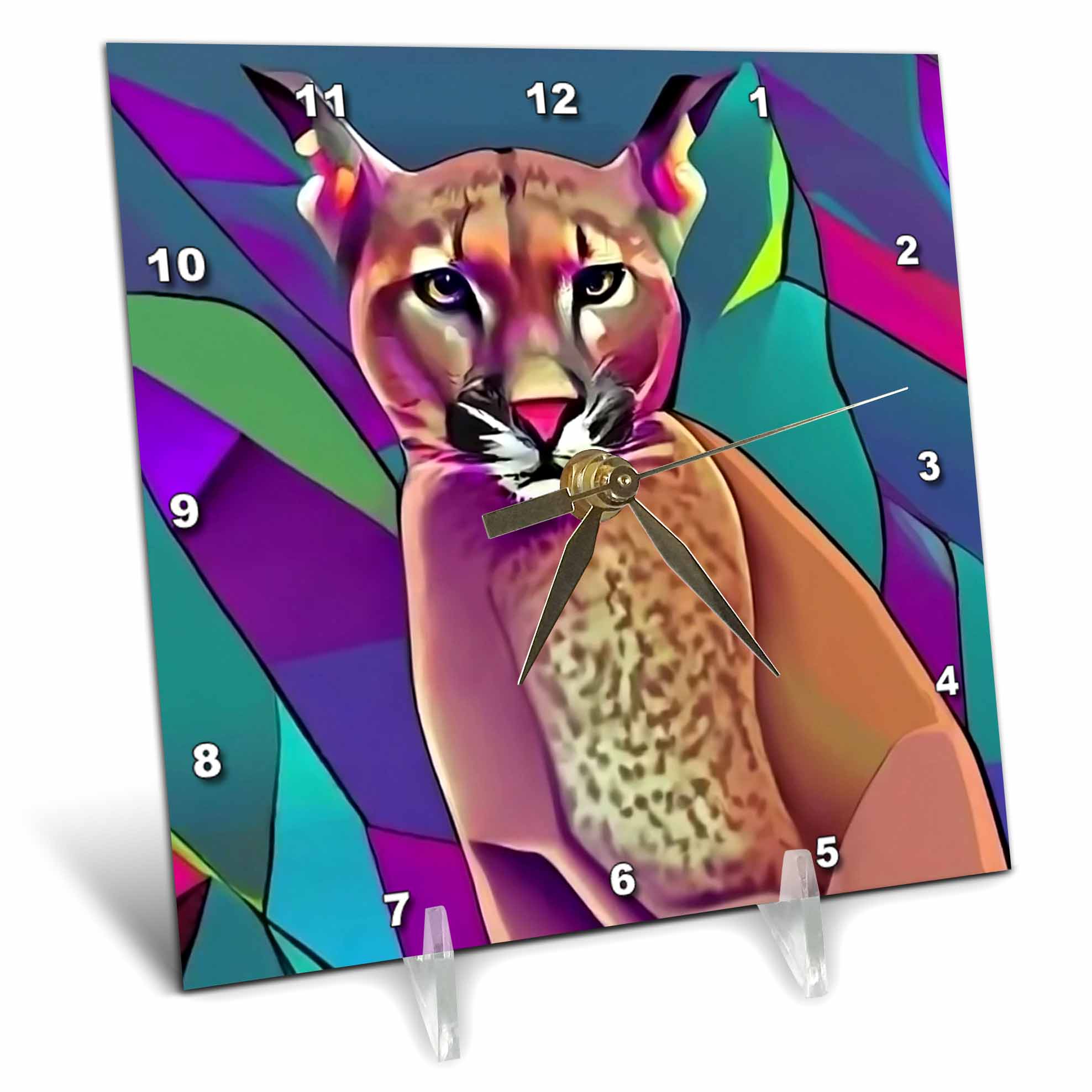 Desk Clock - Cute Funny Cool Colorful Cougar or Moutnain Lion Cubism Art Animals