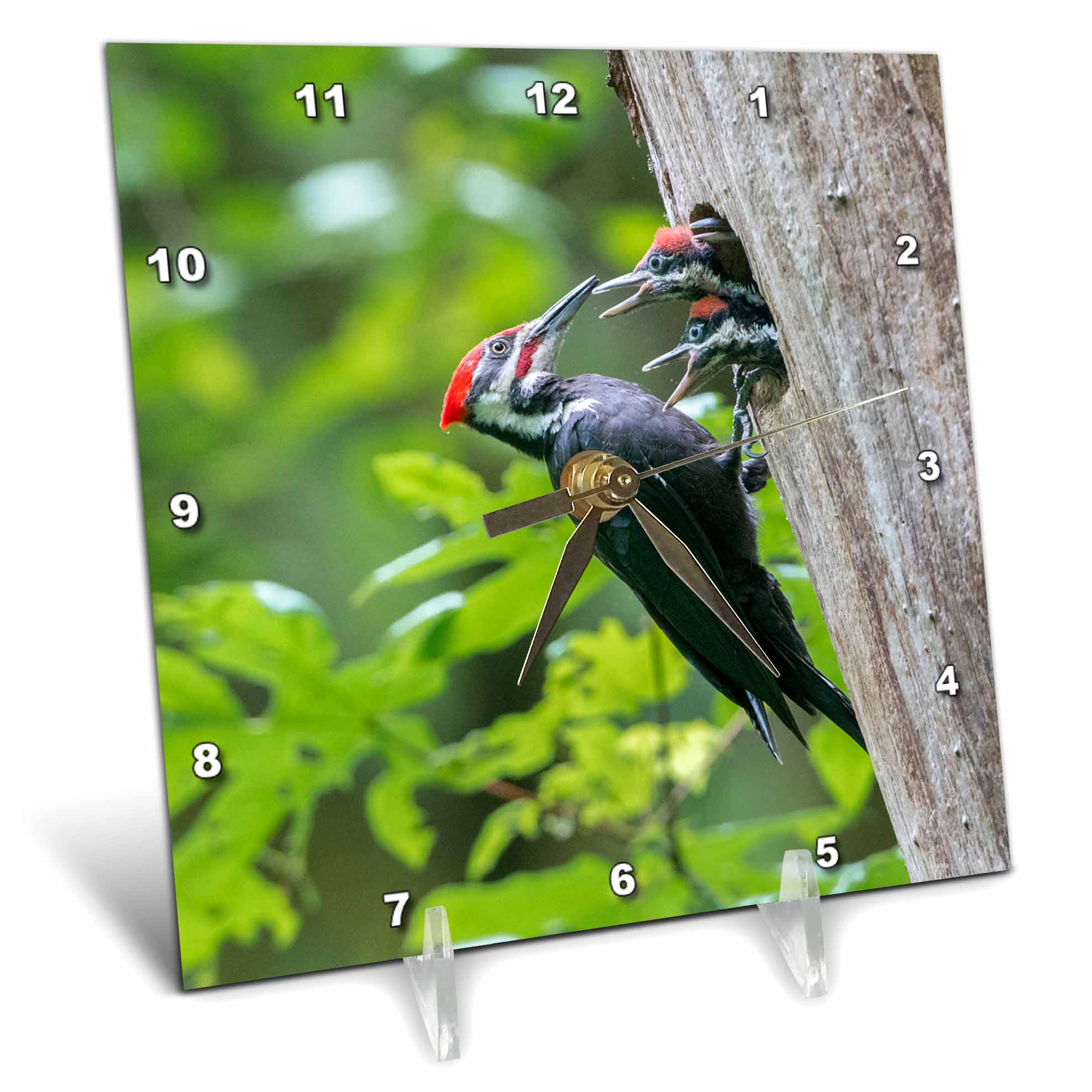 3dRose Danita Delimont - Birds - Washington. Male Pileated Woodpecker Feeds Chicks at nest Hole - Desk Clocks