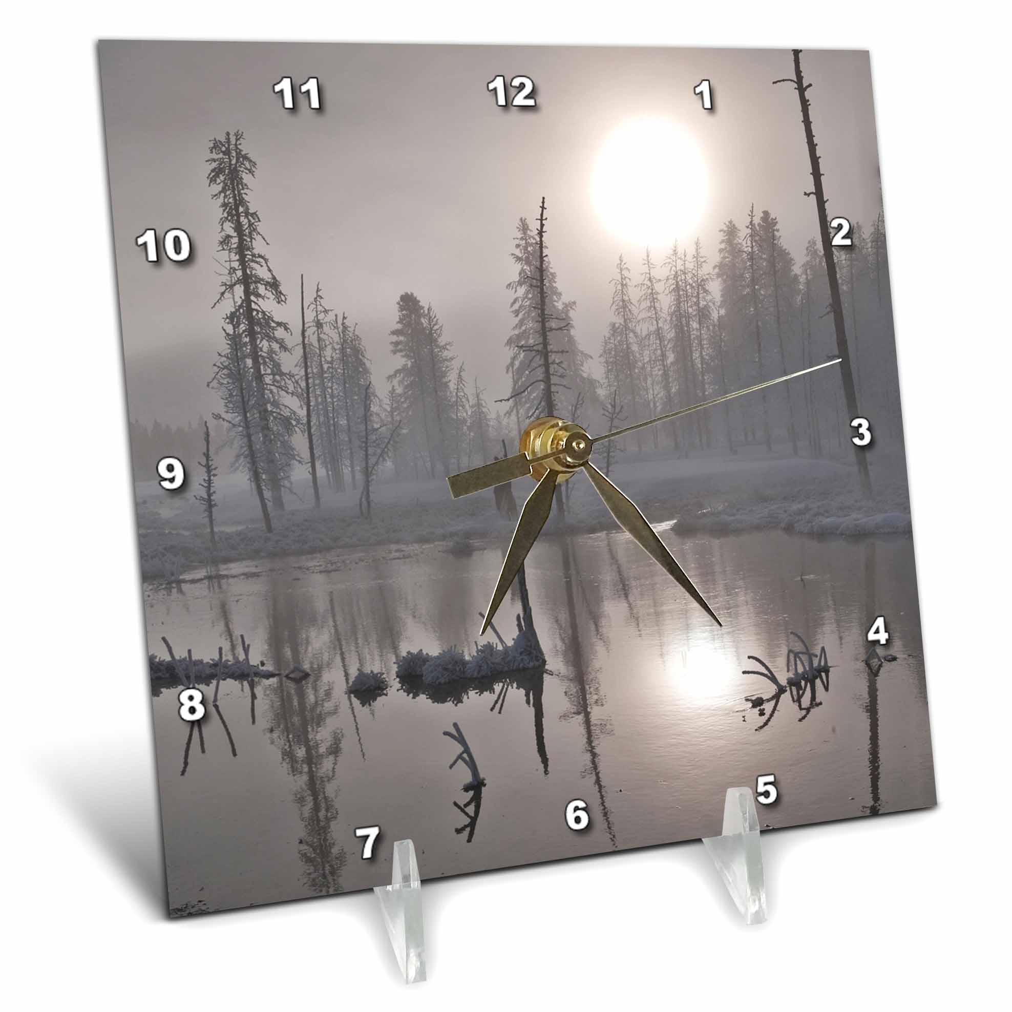 3dRose Danita Delimont - Winter - USA, Wyoming, Yellowstone National Park, Fog, Sunrise - Desk Clocks