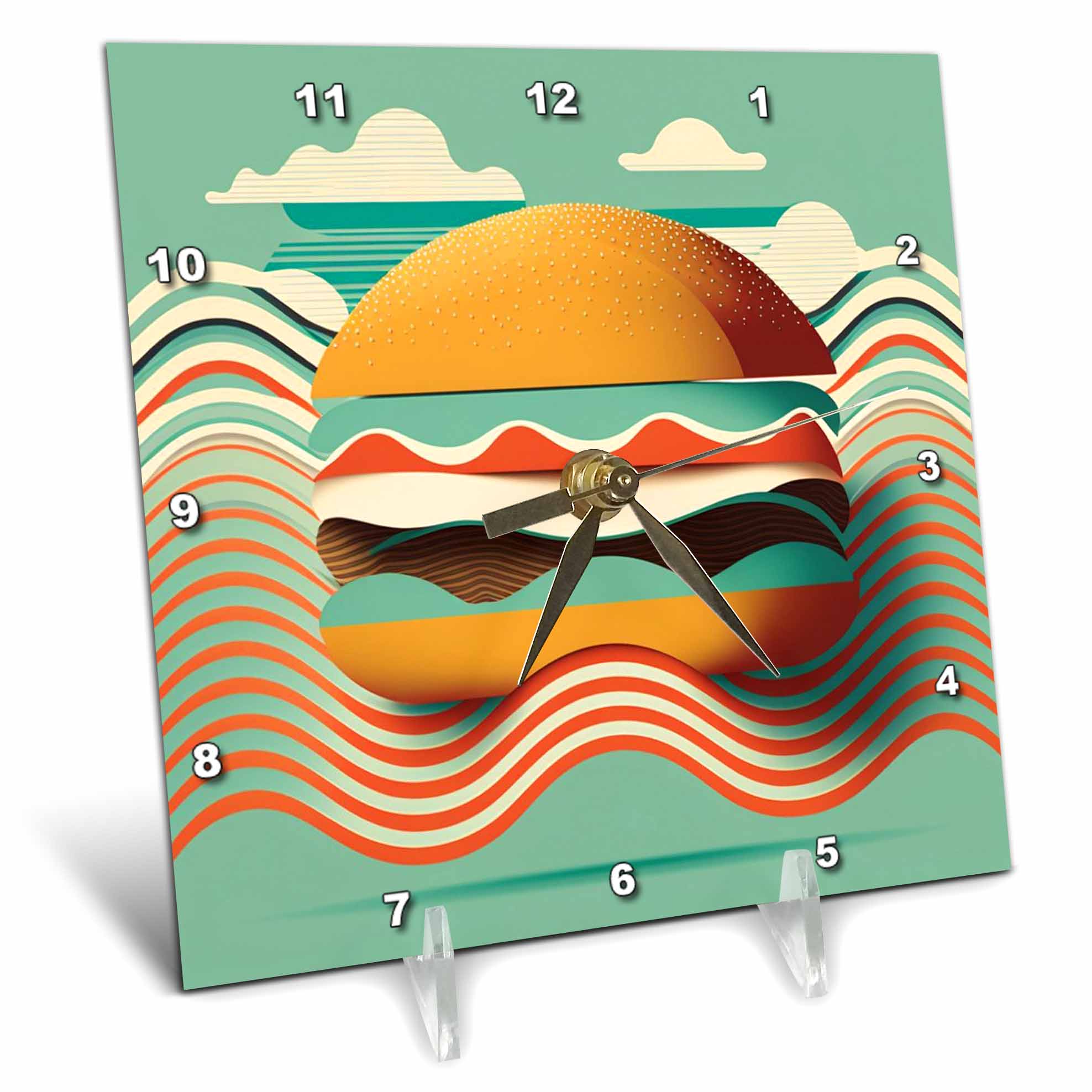 Desk Clock - Geometric accents highlight this mid-century hamburger scene Craftsman Studios - Mid-Century Modern