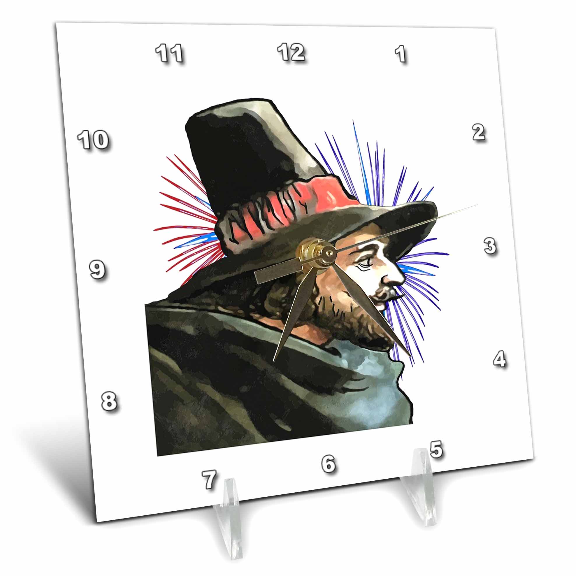 Desk Clock - Guy Fawkes And Fireworks Fifth Of November Vector Art - Guy Fawkes