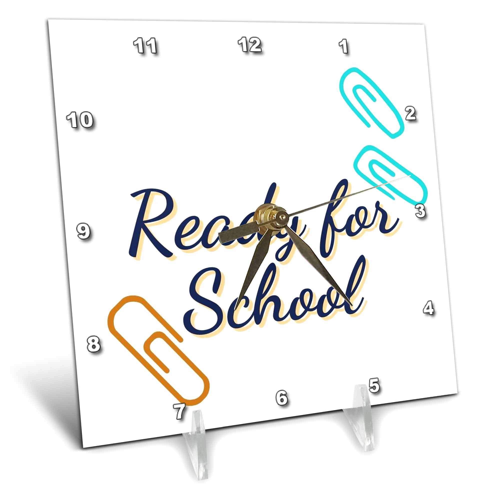 Desk Clock - Image of Pins with Text of Ready School 3dRose Mary Aikeen- Back to School