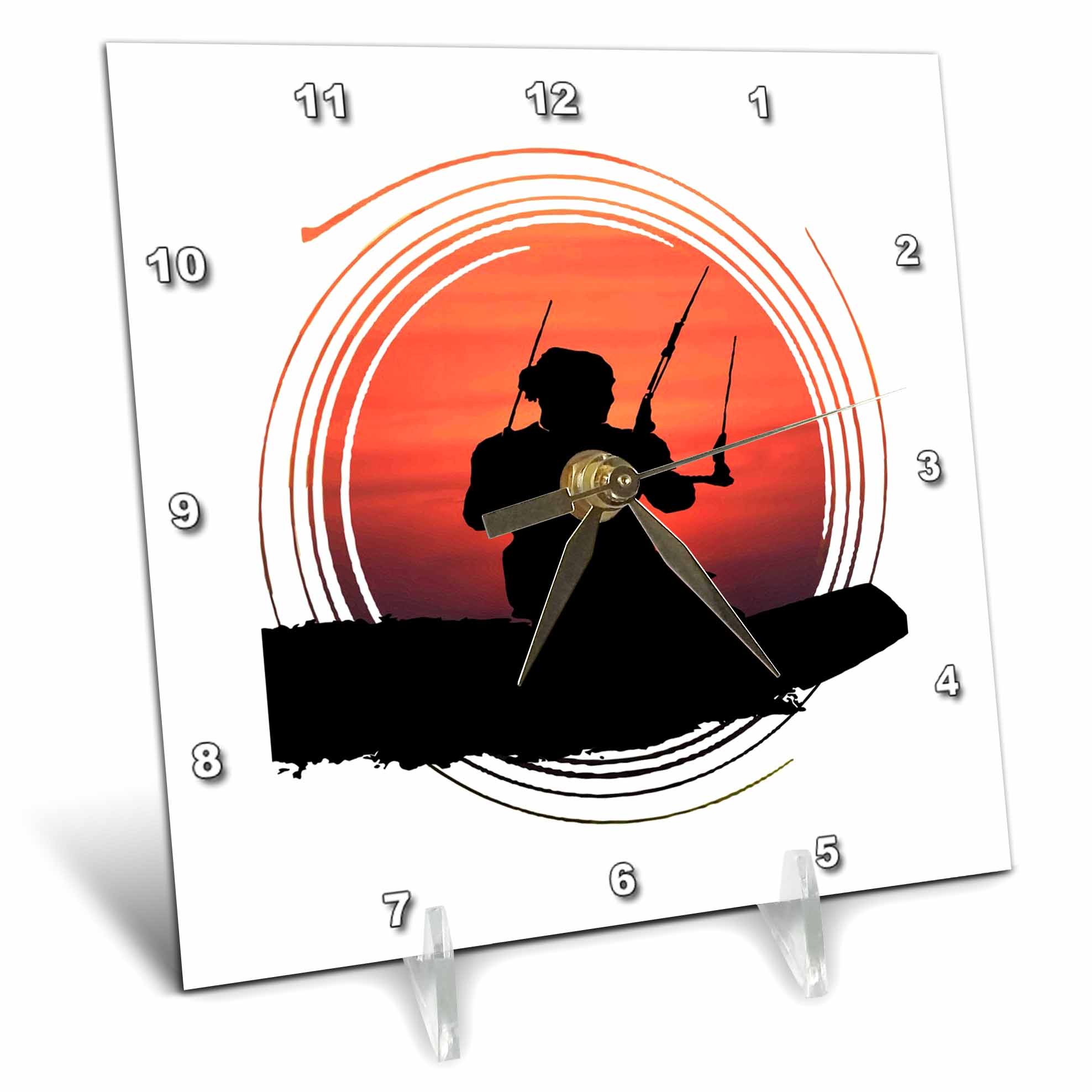Desk Clock - Kitesurfer Surfing The Wave Artistic Silhouette And Sunset Vector Art - Kitesurfing Sport Action