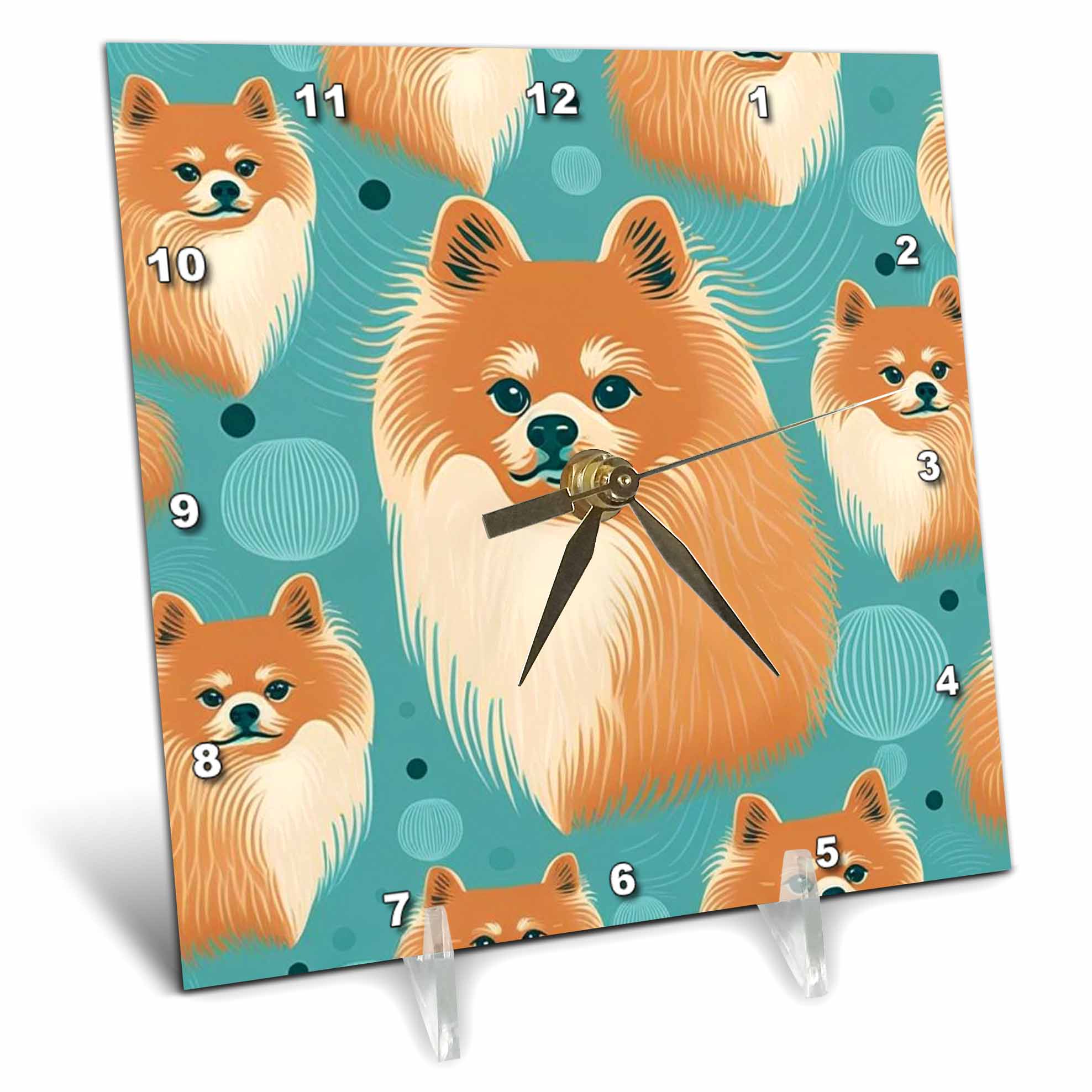 Desk Clock - Mid-century modern meets playful Pomeranian whimsy Craftsman Studios - Mid-Century Modern