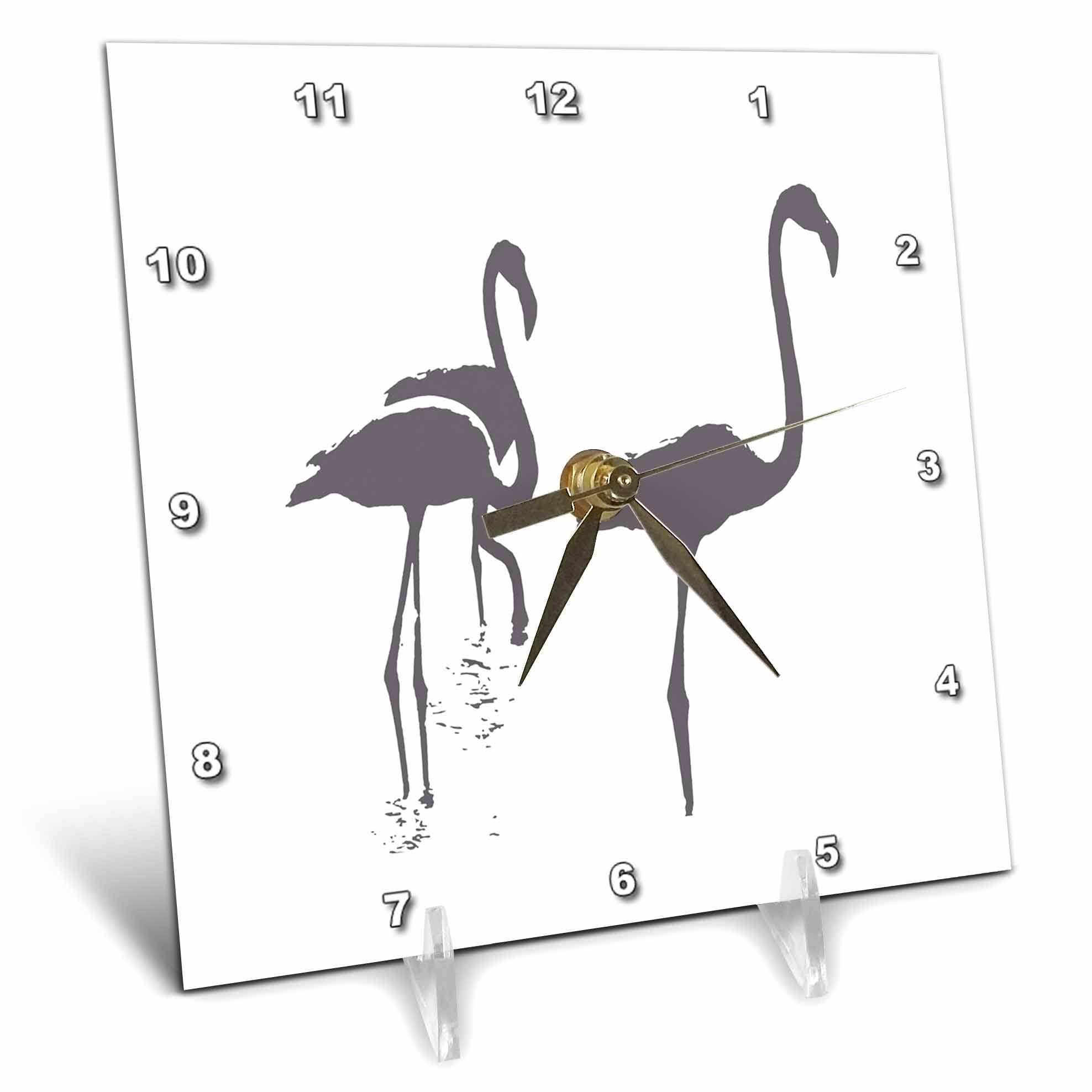 Desk Clock - Minimalistic Three Flamingos Grey Silhouette Vector Art - Flamingo Silhouette