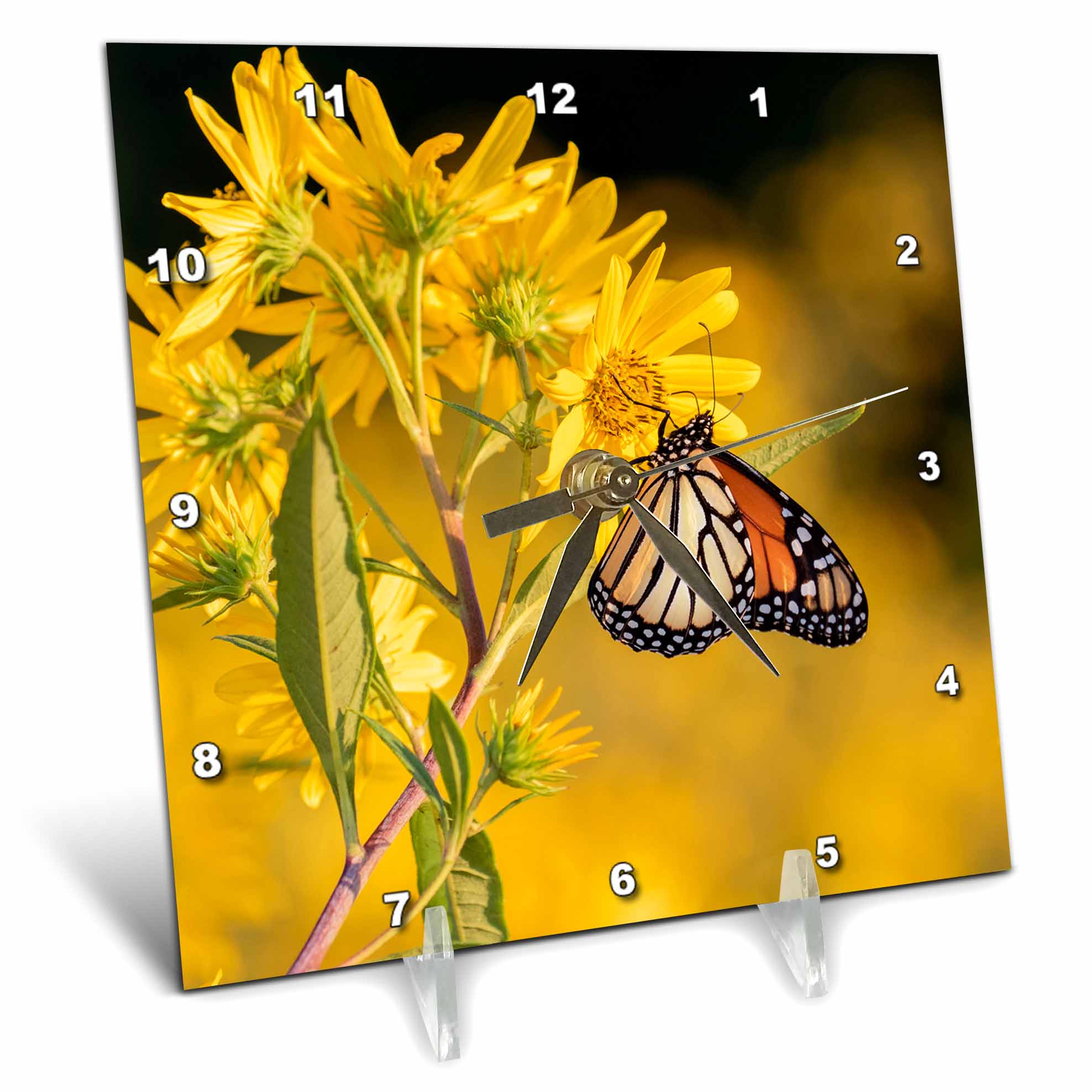 3dRose Monarch Butterfly on Butterweed. Prairie Ridge Natural Area,... - Desk Clocks (dc_346533)