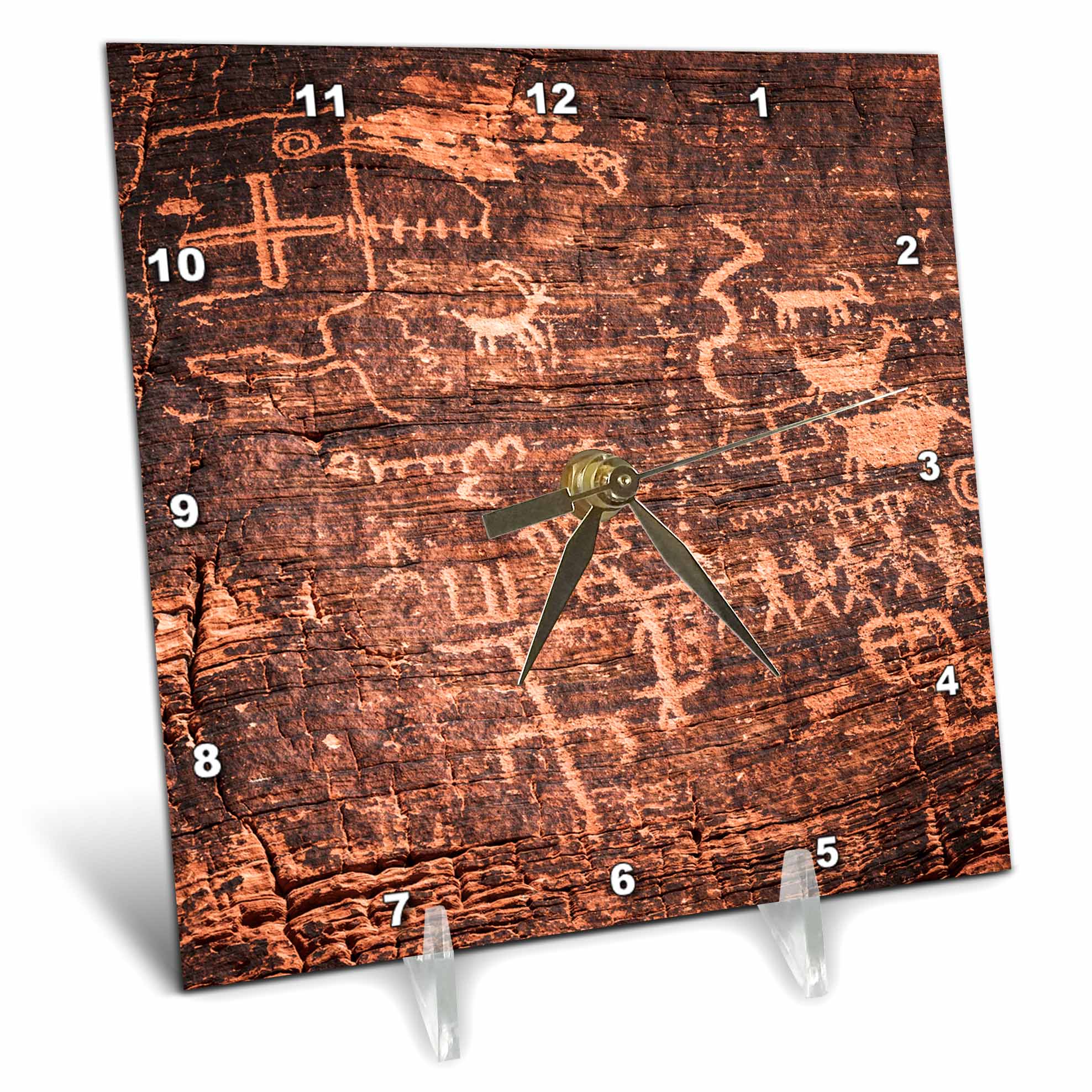 3dRose Petroglyphs at The Mouses Tank, Valley of Fire State Park, Nevada. - Desk Clocks (dc_346748)