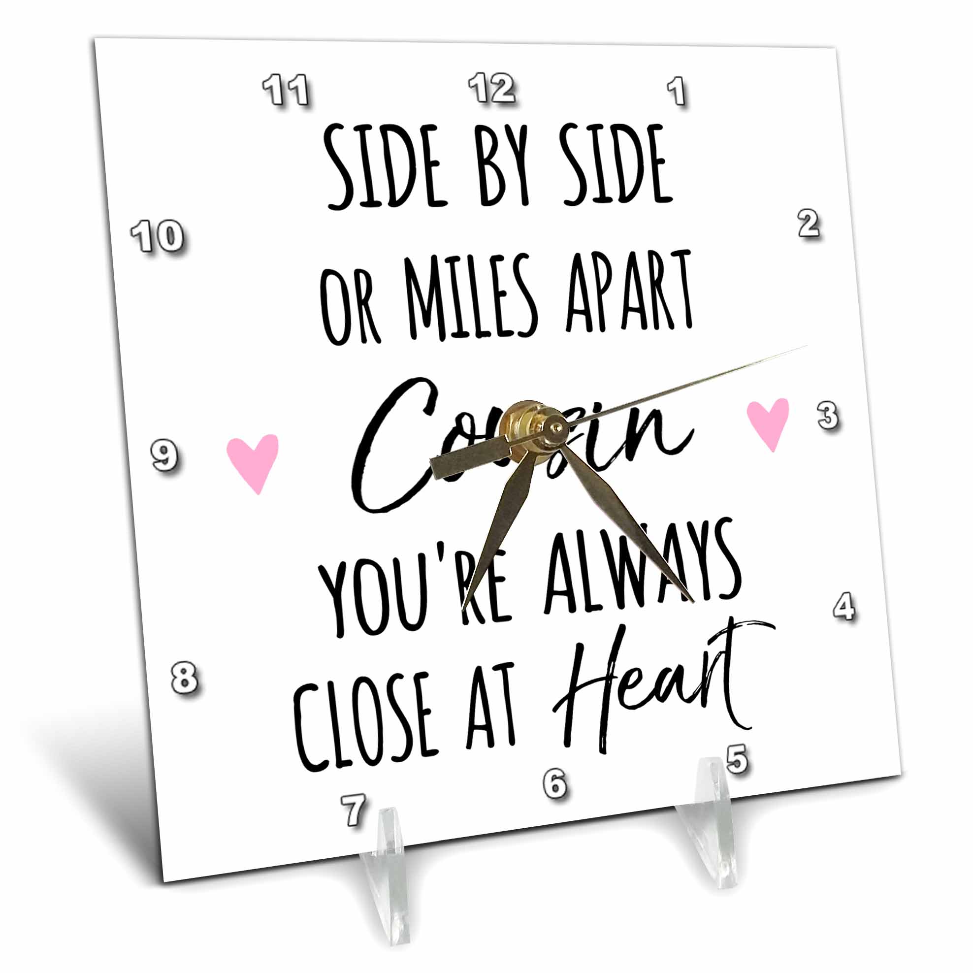 3dRose Side by Side or Miles Apart Cousin You are Always Close at Heart... - Desk Clocks (dc_342029)