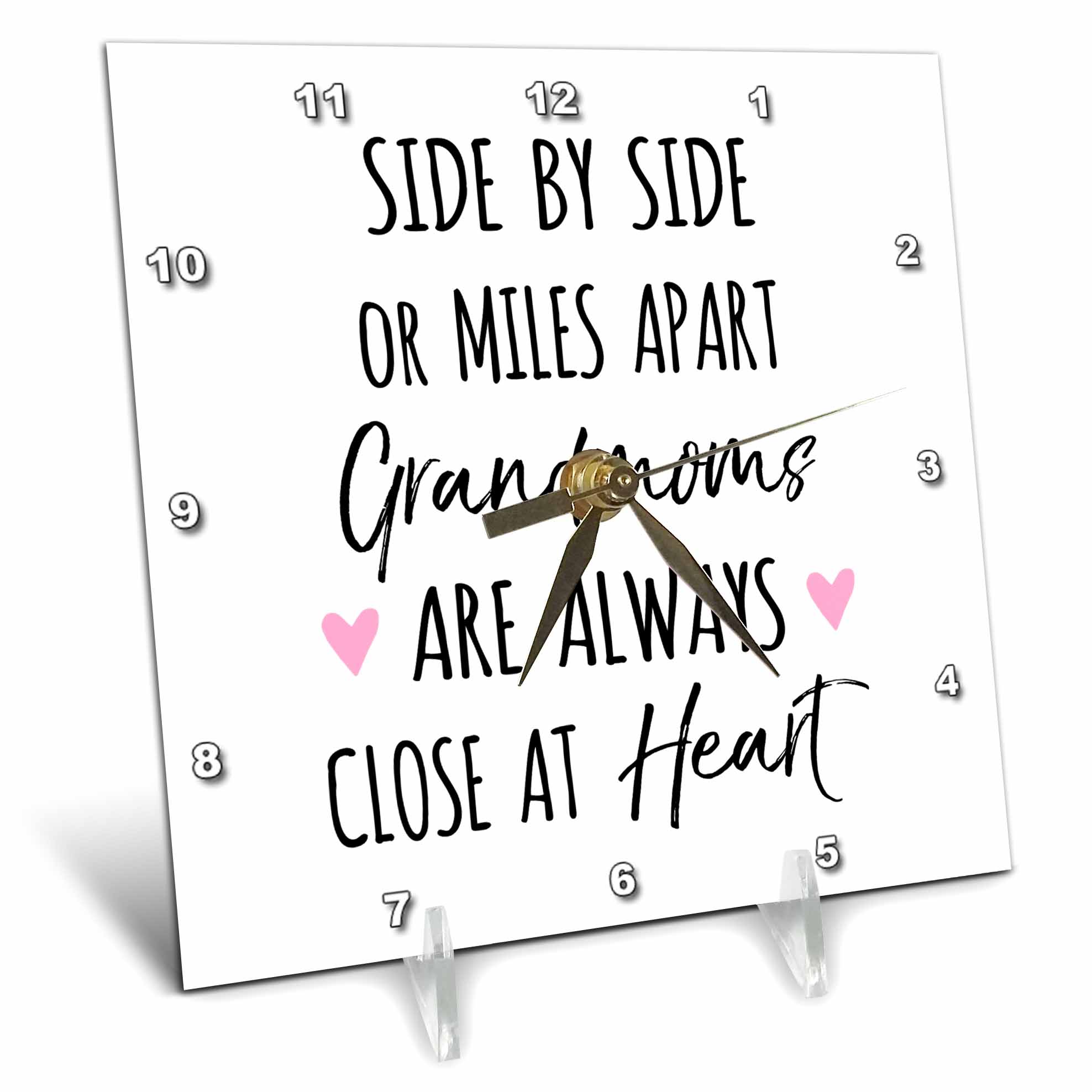 3dRose Side by Side or Miles Apart Grandmoms are Always Close at Heart -... - Desk Clocks (dc_342021)