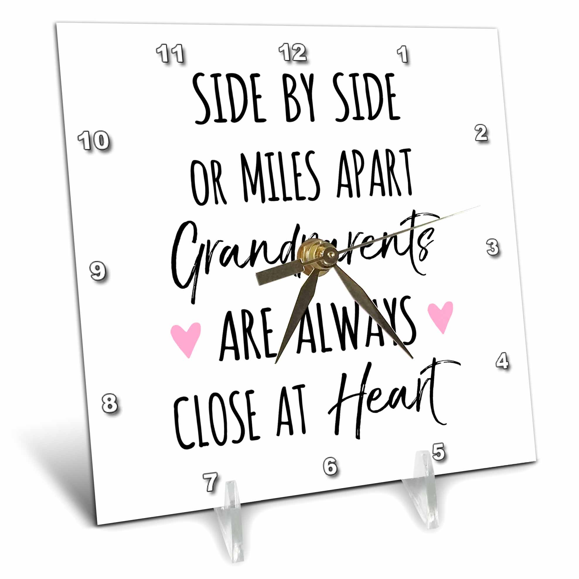 3dRose Side by Side or Miles Apart Grandparents are Always Close at Heart - Desk Clocks (dc_342012)