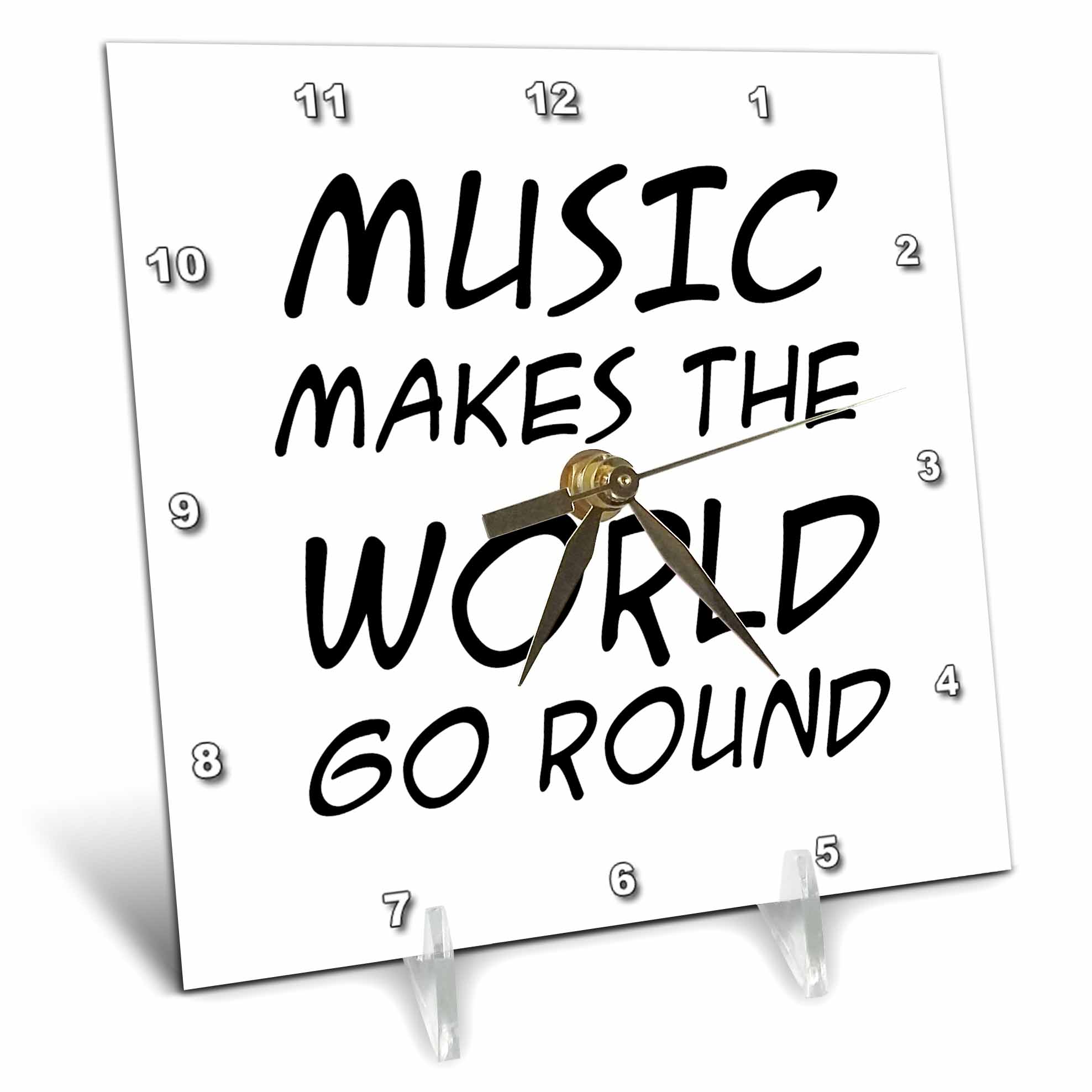 3dRose Stamp City - Typography - Music Makes The World go Round. Black Lettering on White Background. - Desk Clocks (dc_321743)
