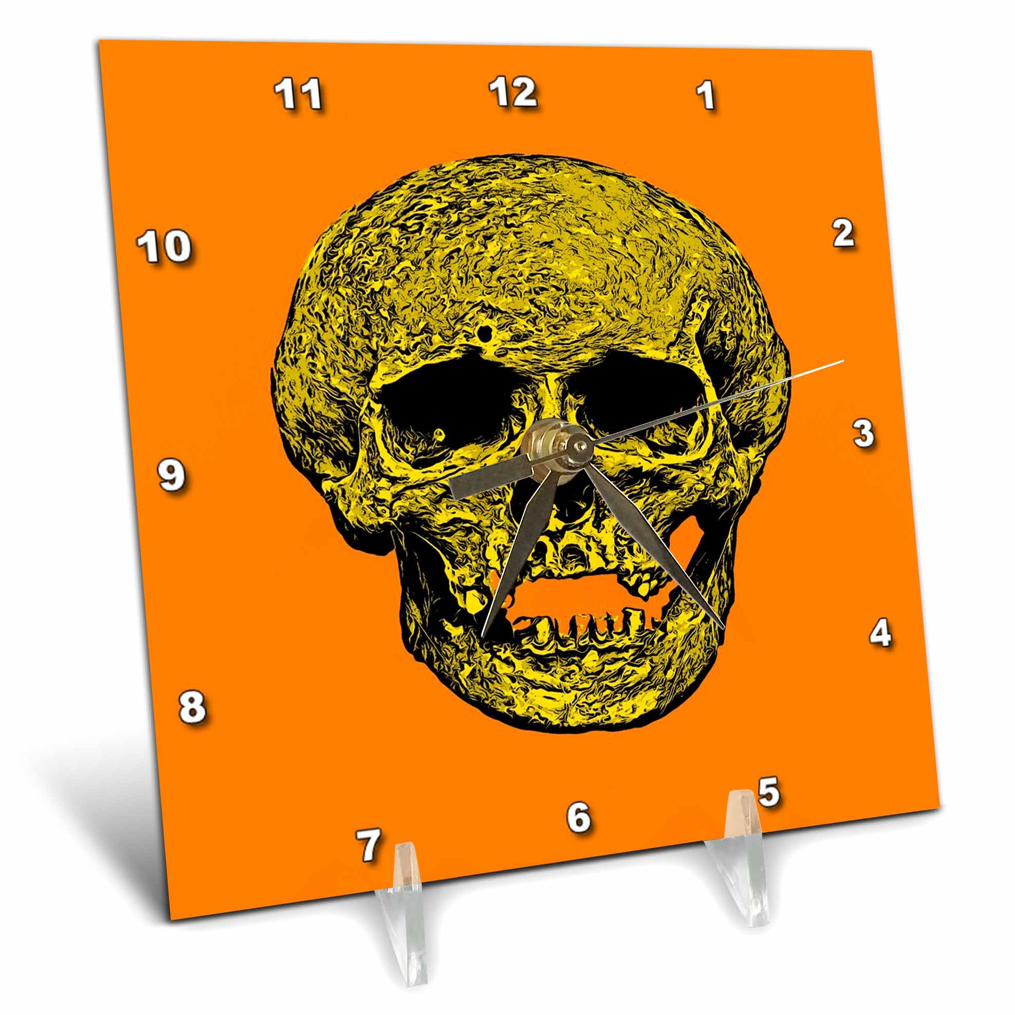 Desk Clock - Vile Grungy Cranium Art In Bright Yellow Colors Vector Art - Halloween Skull