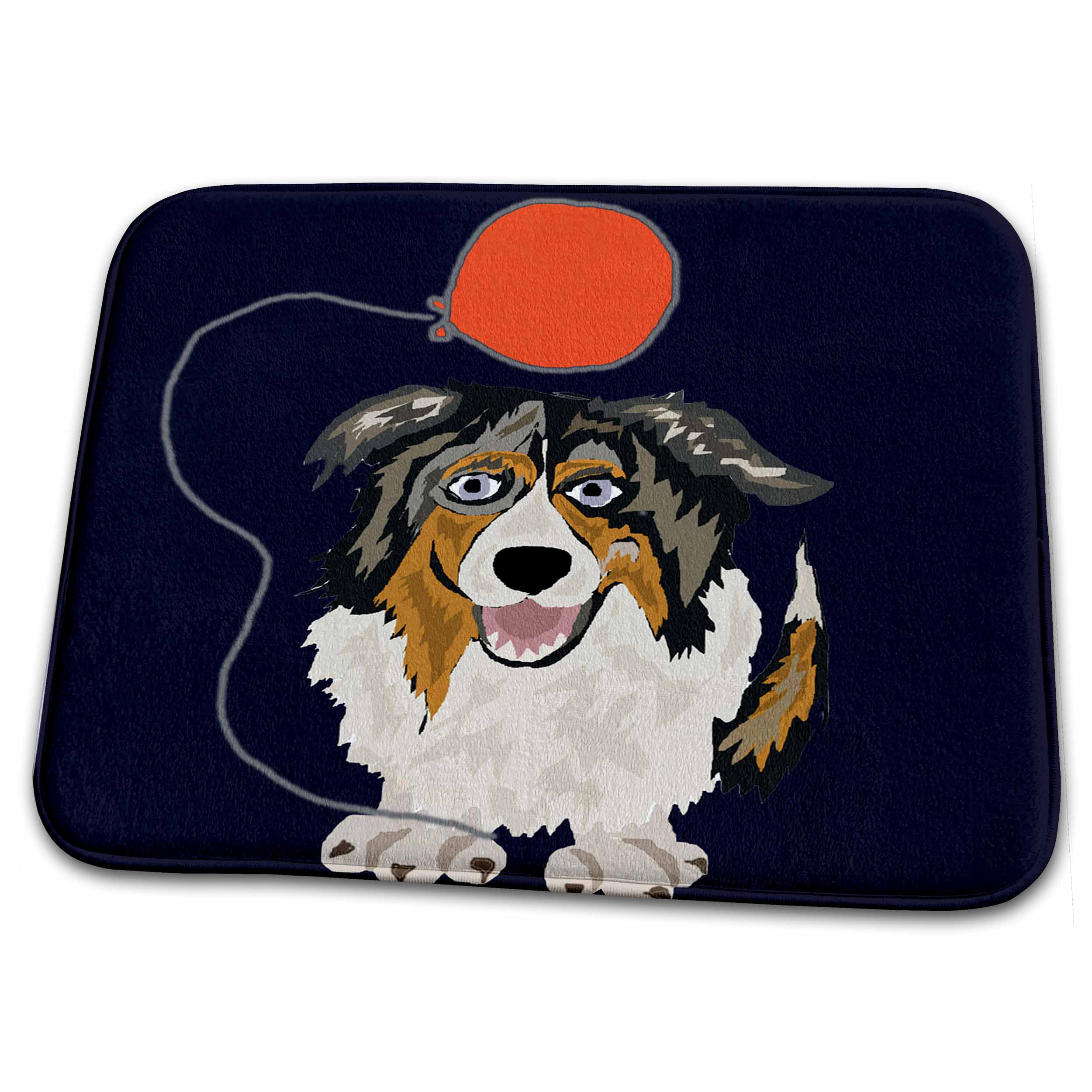 3dRose Funny Australian Shepherd Puppy Dog Birthday Art - Dish Drying Mats (ddm-238507)