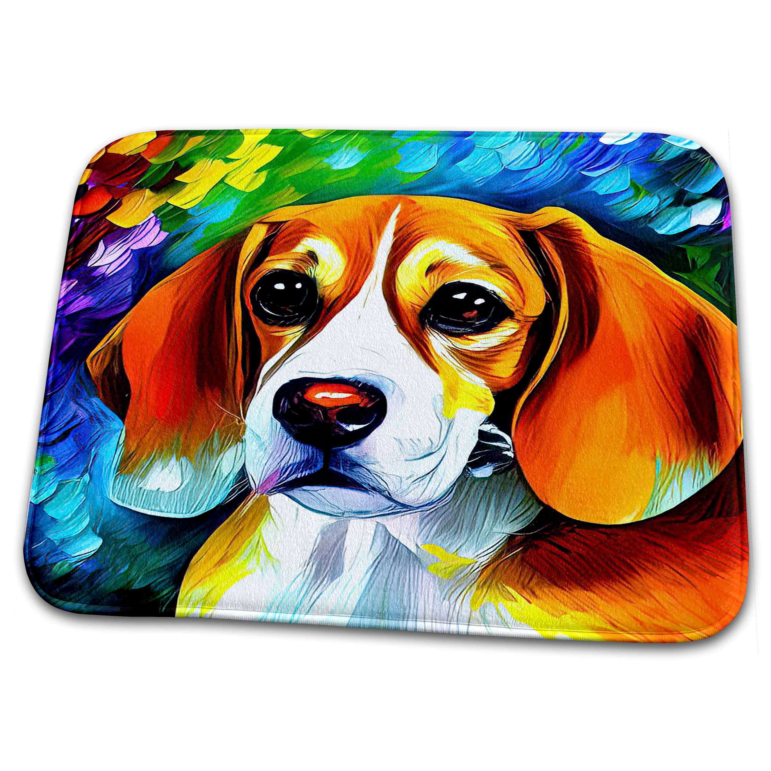 Colorful digital painting of a Beagle dog breed. Family gift, charm Dish Drying Mat is a high quality dish drying mat, 23" x 18" with 0.125" thickness. Printed with exquisite sublimated designs. Versatile for all types of countertops. Optimized for comfort and durability. Made of soft polyester.
