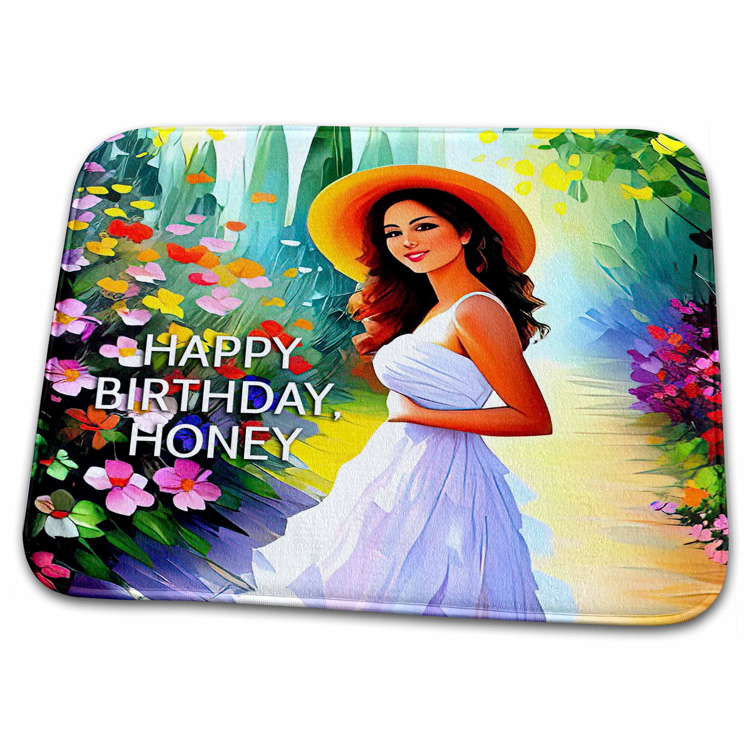 Happy Birthday, Honey. Smiling young woman in the garden card, gift Dish Drying Mat is a high quality dish drying mat, 23" x 18" with 0.125" thickness. Printed with exquisite sublimated designs. Versatile for all types of countertops. Optimized for comfort and durability. Made of soft polyester.