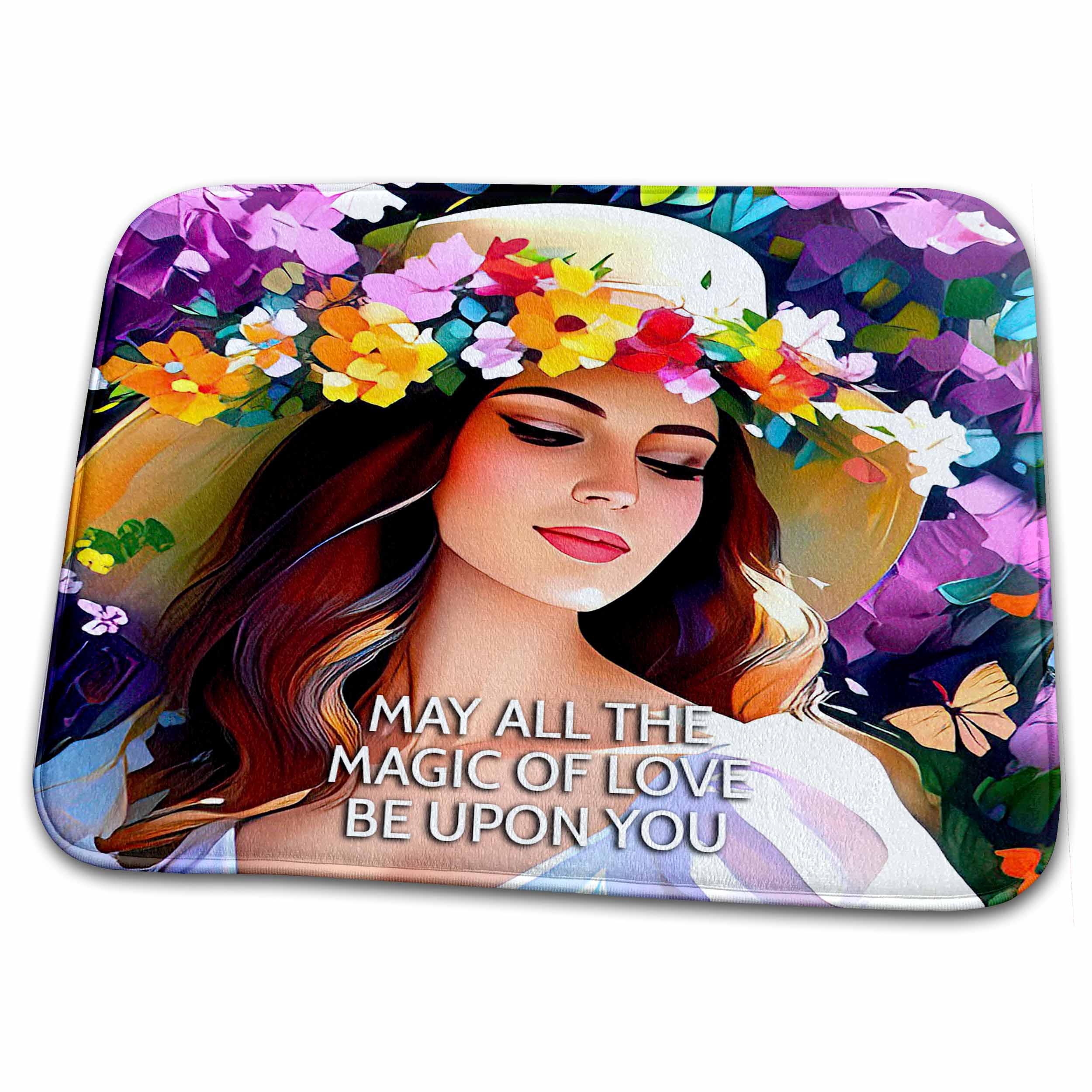 May all the magic of love be upon you. Young woman in the garden card Dish Drying Mat is a high quality dish drying mat, 23" x 18" with 0.125" thickness. Printed with exquisite sublimated designs. Versatile for all types of countertops. Optimized for comfort and durability. Made of soft polyester.