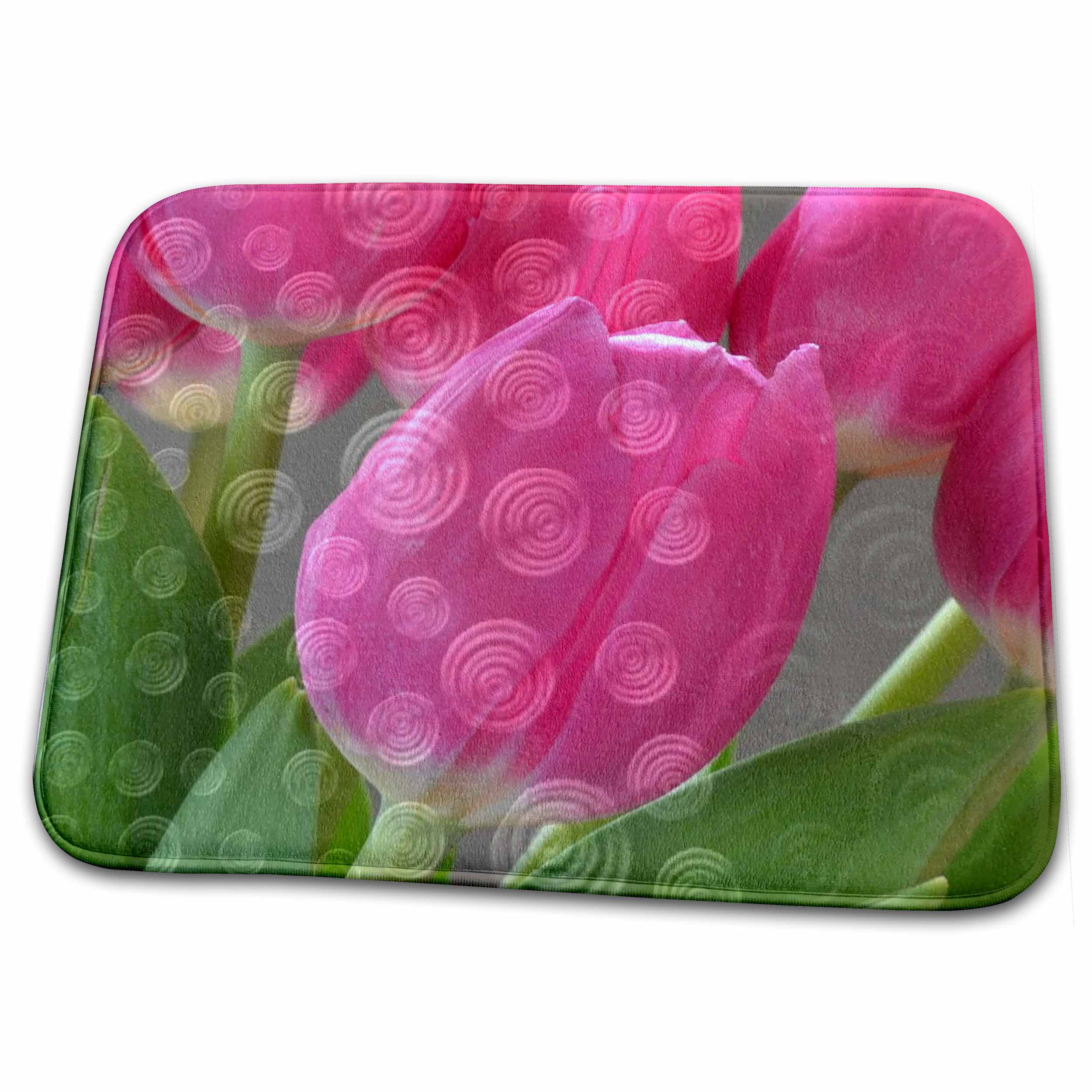 Pink Tulip Swirls- Flowers- Photography Dish Drying Mat is a high quality dish drying mat, 23" x 18" with 0.125" thickness. Printed with exquisite sublimated designs. Versatile for all types of countertops. Optimized for comfort and durability. Made of soft polyester.
