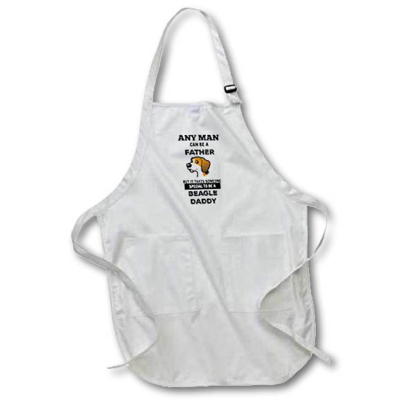 Beagle Daddy Apron is made of a 65/35 poly/cotton blend. Whether it is put to use in a restaurant or at home, this apron will always help to keep you clean. Full length features adjustable neck strap. Medium length features non-adjustable neck strap that fits over your head. Both sizes also tie around the waist.