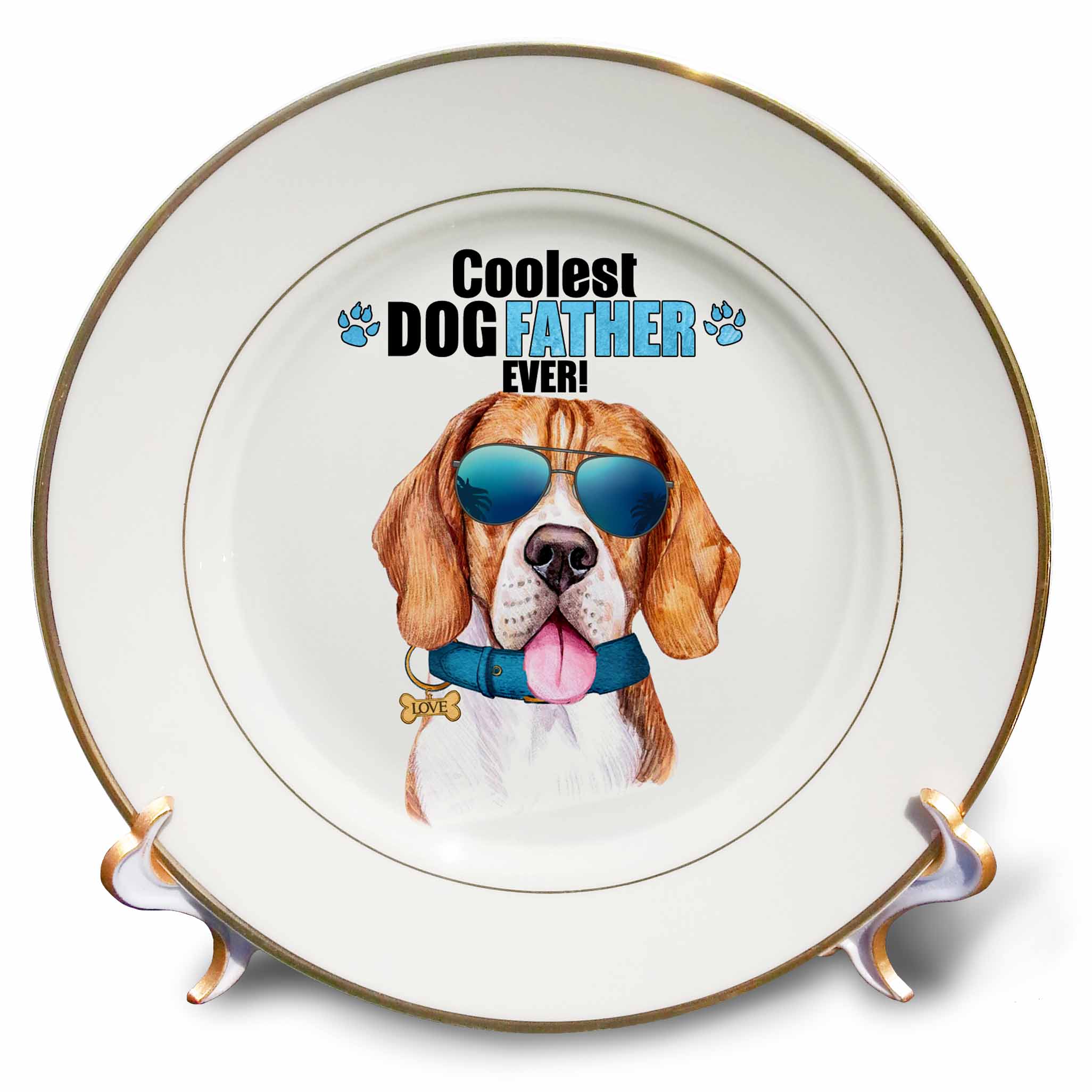 Cute Cool Beagle Dog in Sunglasses and Love Collar for DOGfathers Plate is 7.5" in diameter. Made of white porcelain featuring two 24k gold rims. Excellent to give as a gift commemorating a special person or event. Stand included. Decorative use only.