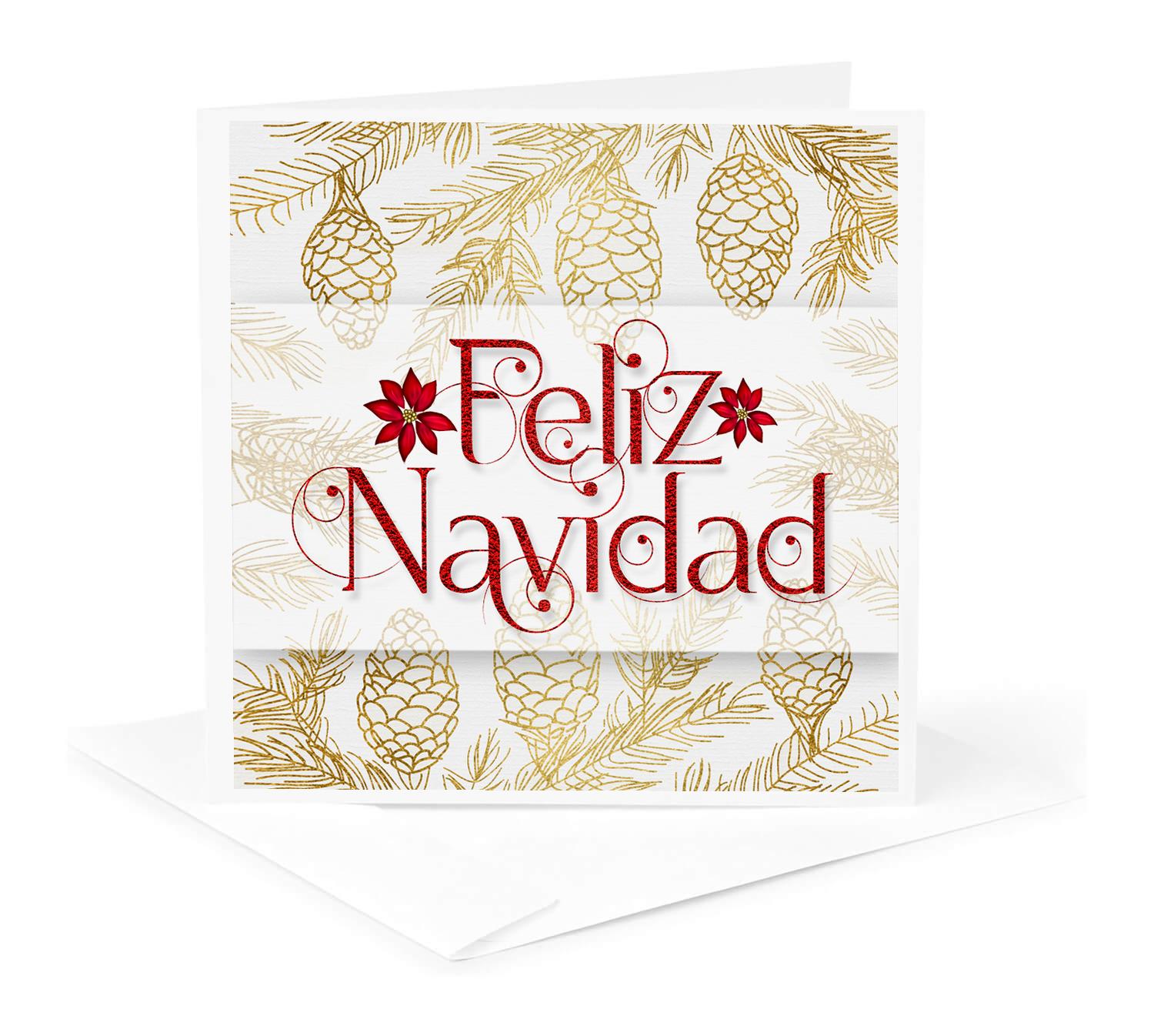 3dRose Doreen Erhardt Christmas Collection - Red Poinsettias and Feliz Navidad with Image of Golden Pines - Greeting Cards (gc_298762)