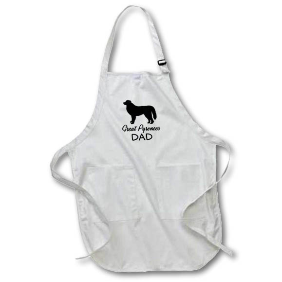 Great Pyrenees Dog Dad Apron is made of a 65/35 poly/cotton blend. Whether it is put to use in a restaurant or at home, this apron will always help to keep you clean. Full length features adjustable neck strap. Medium length features non-adjustable neck strap that fits over your head. Both sizes also tie around the waist.