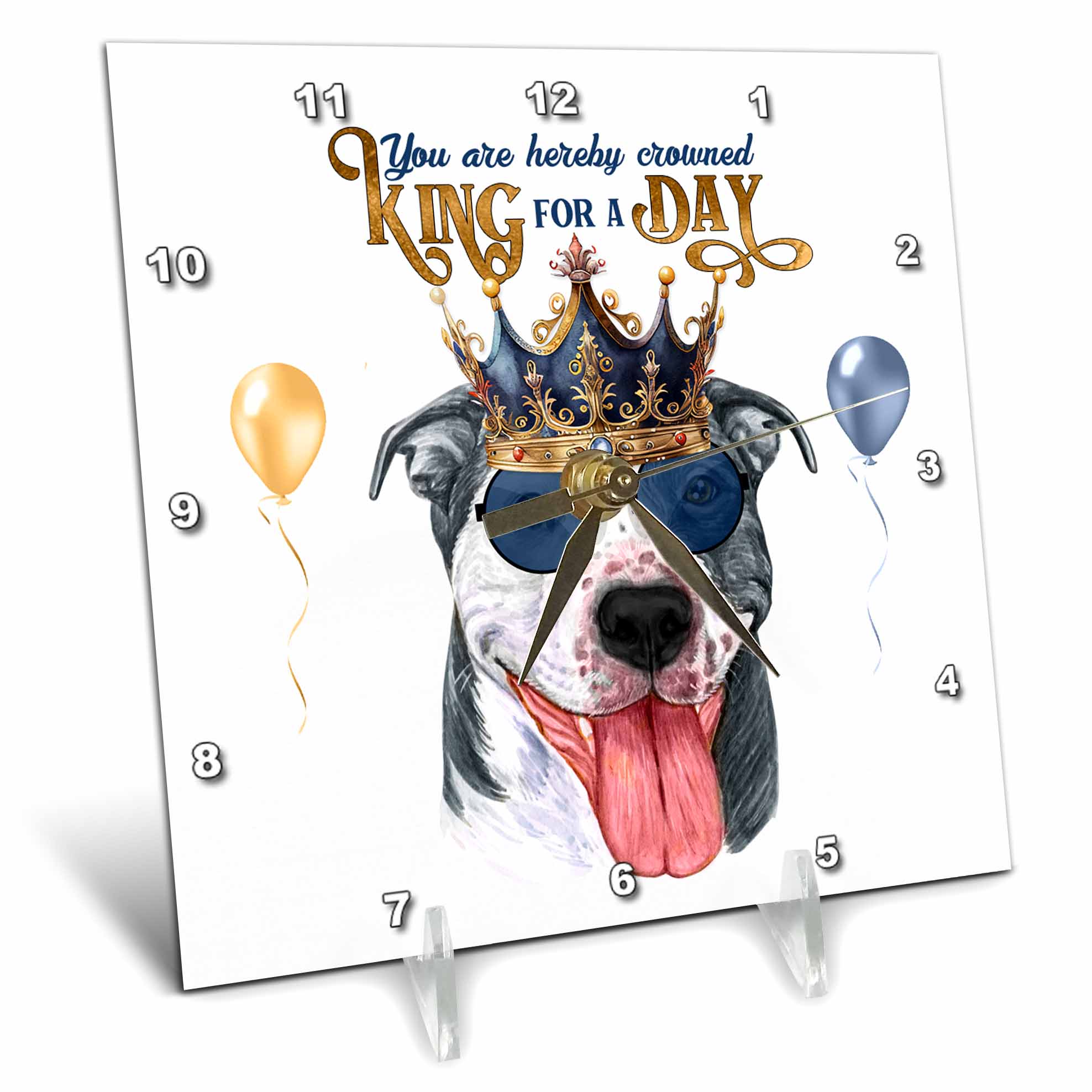 Desk Clock - Staffordshire Terrier Pit Bull Dog in a Crown King of the Day for Dads KING for a Day Dogs