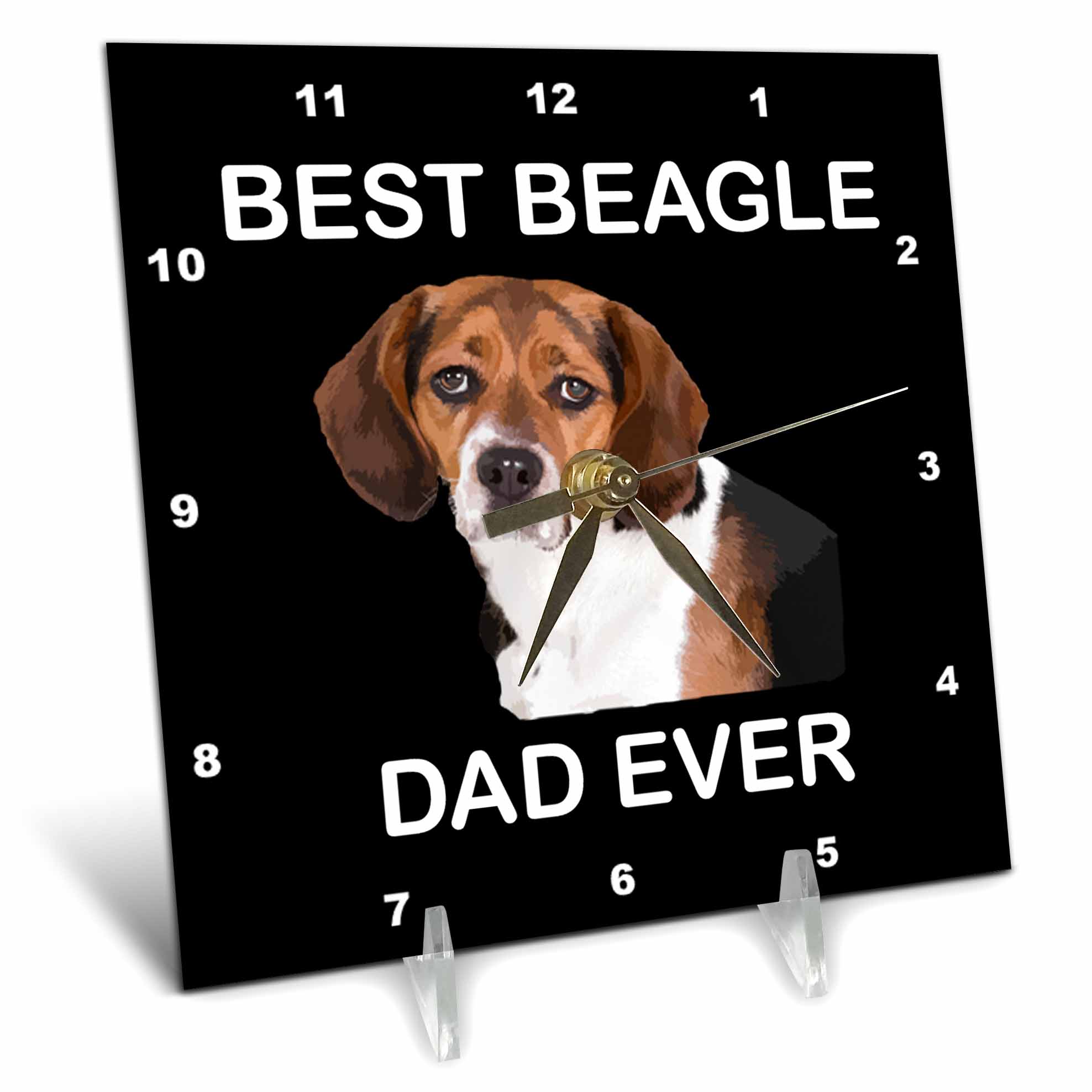 3dRose Sven Herkenrath Dog - Funny Beagle Dog Portrait with Best Beagle Dad Ever - Desk Clocks