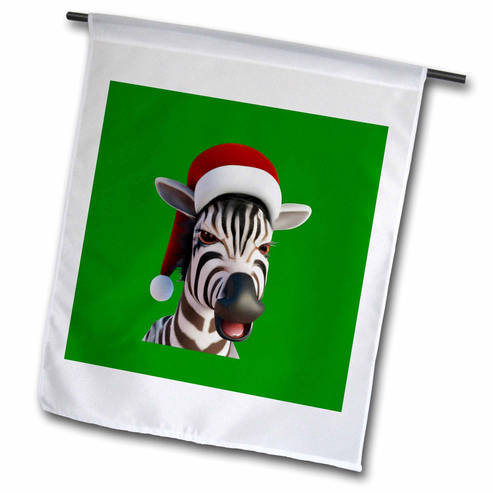 Christmas Zebra Funny Animal Wearing Santa Hat Flag is a creative way to celebrate all year round by adding a little bit of color and fun. Made of 100% single-ply semi-opaque polyester with the image printed on one side; a lighter image will be visible on the backside. Hang using a pole, on the wall, ceiling, banister, and door or anywhere you feel the need to add a splash of color. Hanging hardware/pole not included.