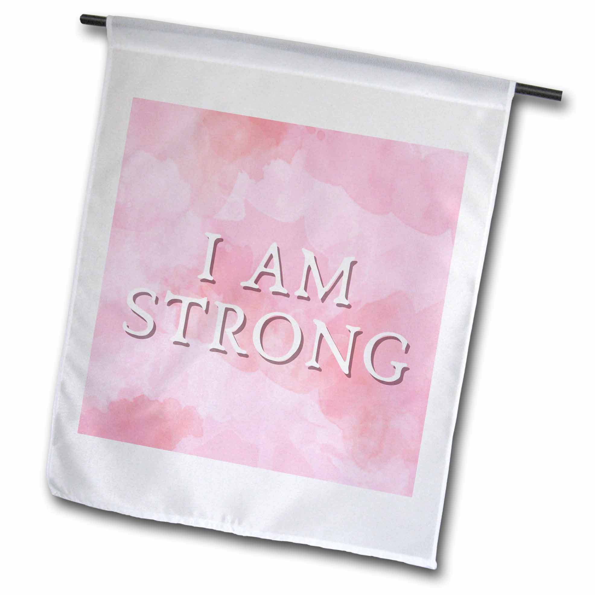 Cute Pink Background with Text I am Strong Flag is a creative way to celebrate all year round by adding a little bit of color and fun. Made of 100% single-ply semi-opaque polyester with the image printed on one side; a lighter image will be visible on the backside. Hang using a pole, on the wall, ceiling, banister, and door or anywhere you feel the need to add a splash of color. Hanging hardware/pole not included.