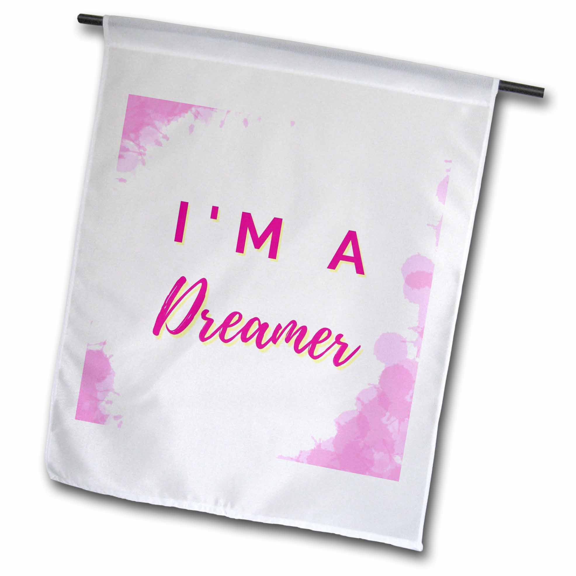 Cute Pink Background with Text Im a Dreamer Flag is a creative way to celebrate all year round by adding a little bit of color and fun. Made of 100% single-ply semi-opaque polyester with the image printed on one side; a lighter image will be visible on the backside. Hang using a pole, on the wall, ceiling, banister, and door or anywhere you feel the need to add a splash of color. Hanging hardware/pole not included.
