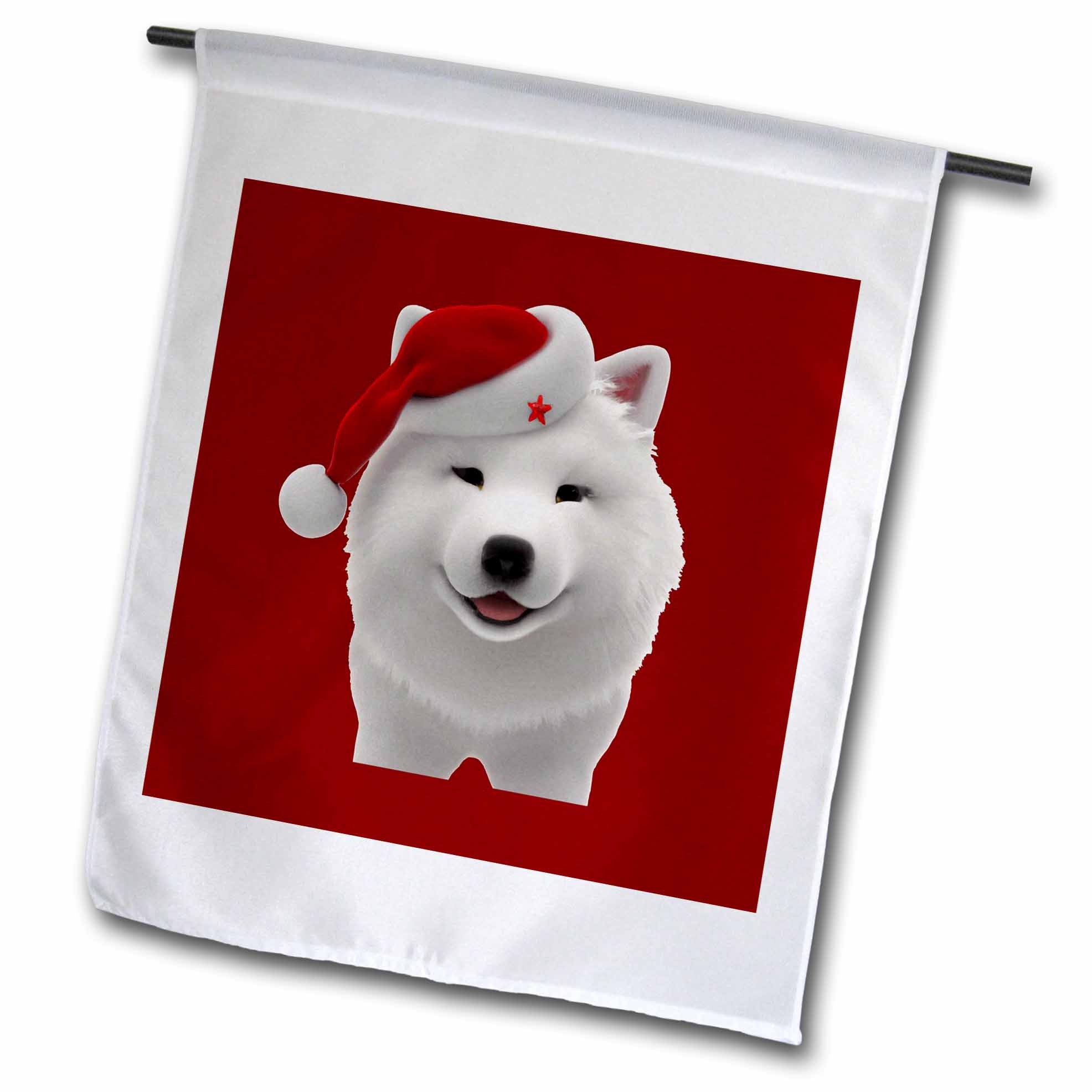 Festive Cute Cartoon Style Samoyed Dog With Santa Hat Flag is a creative way to celebrate all year round by adding a little bit of color and fun. Made of 100% single-ply semi-opaque polyester with the image printed on one side; a lighter image will be visible on the backside. Hang using a pole, on the wall, ceiling, banister, and door or anywhere you feel the need to add a splash of color. Hanging hardware/pole not included.