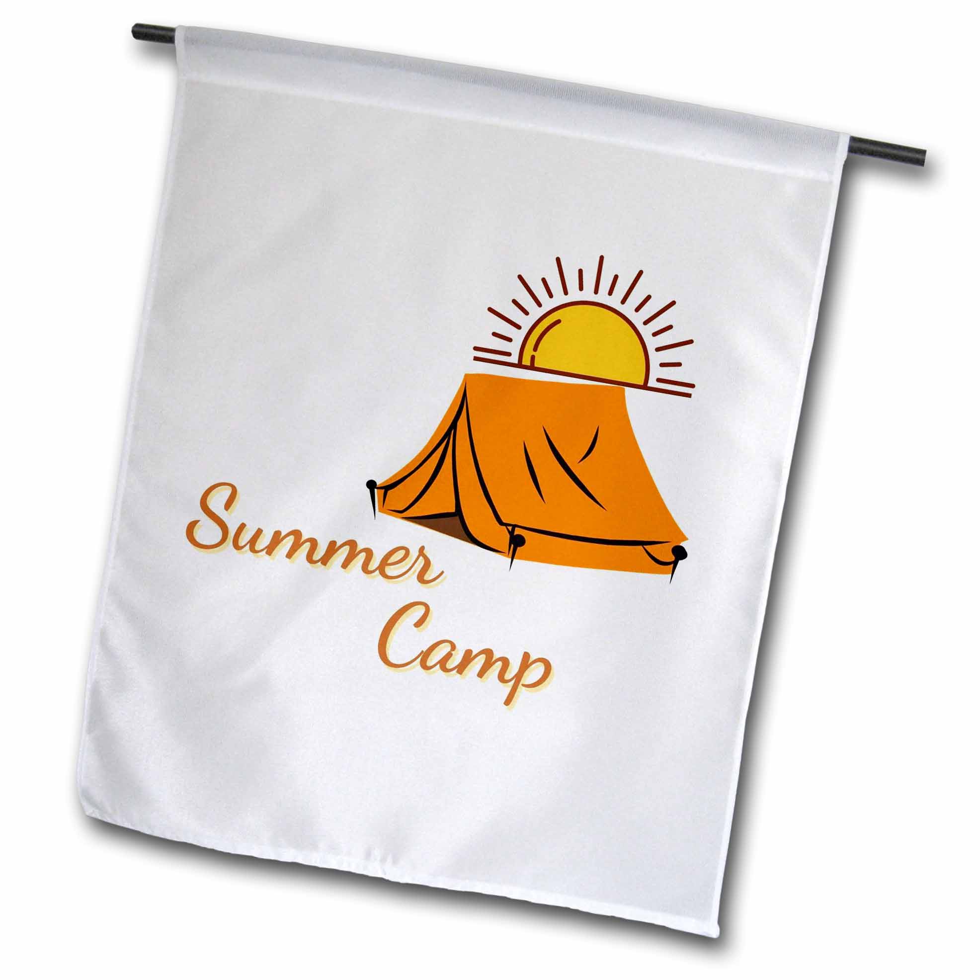 Image of a Tent for camping with Text of Summer camp Flag is a creative way to celebrate all year round by adding a little bit of color and fun. Made of 100% single-ply semi-opaque polyester with the image printed on one side; a lighter image will be visible on the backside. Hang using a pole, on the wall, ceiling, banister, and door or anywhere you feel the need to add a splash of color. Hanging hardware/pole not included.