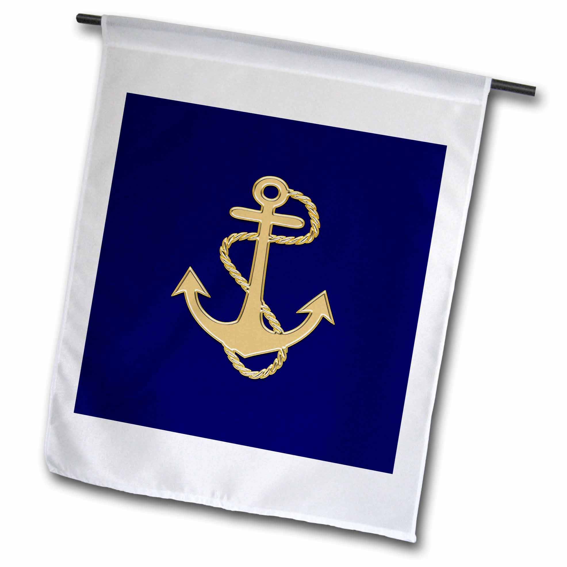 3dRose lens Art by Florene - Nautical Decor - Image of Popular Gold Anchor With Chain On Navy Blue - Flags (fl_306840)