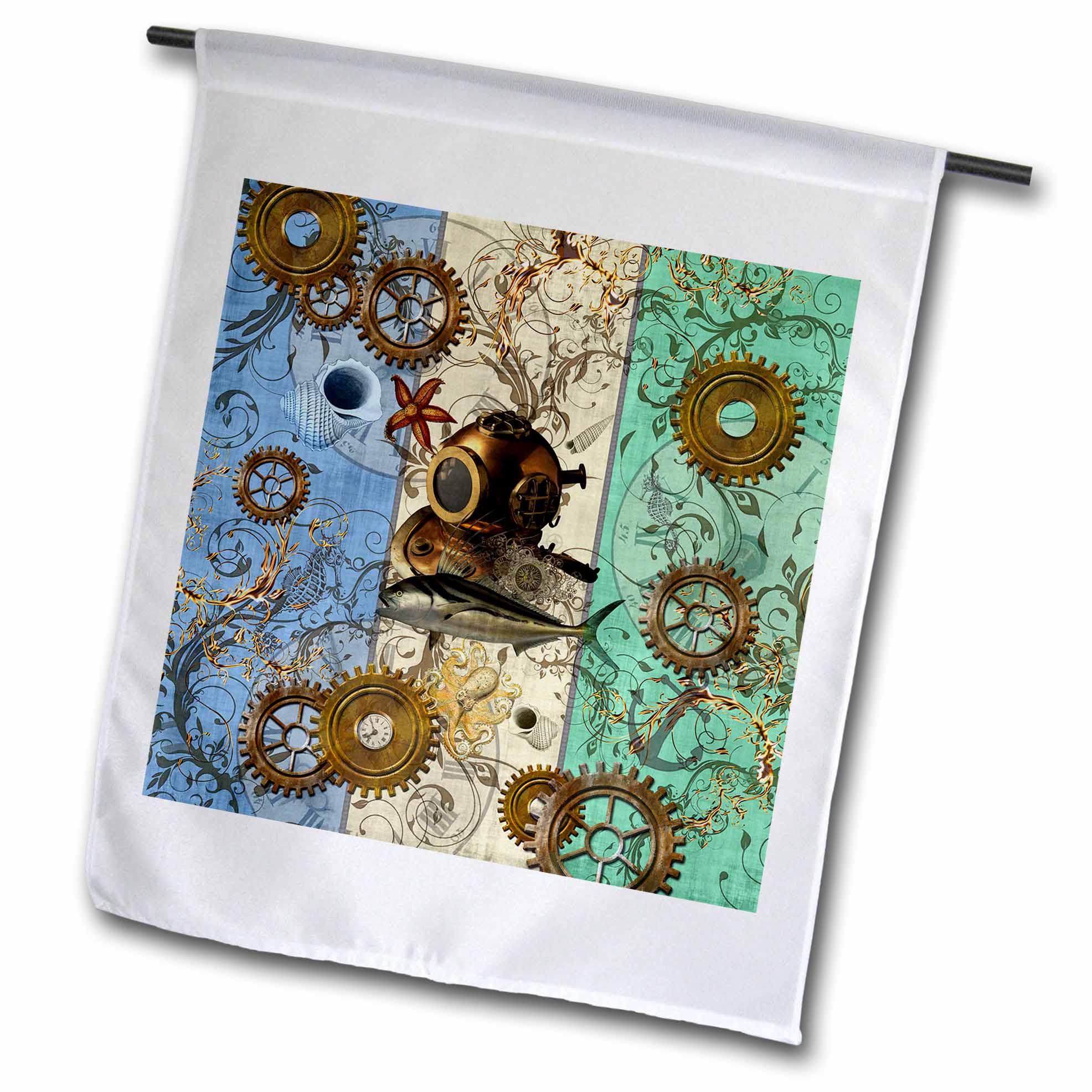 3dRose Lucia - Steampunk - Nautical Steampunk With Antique Divers Helmet and Sea Creatures - Flags
