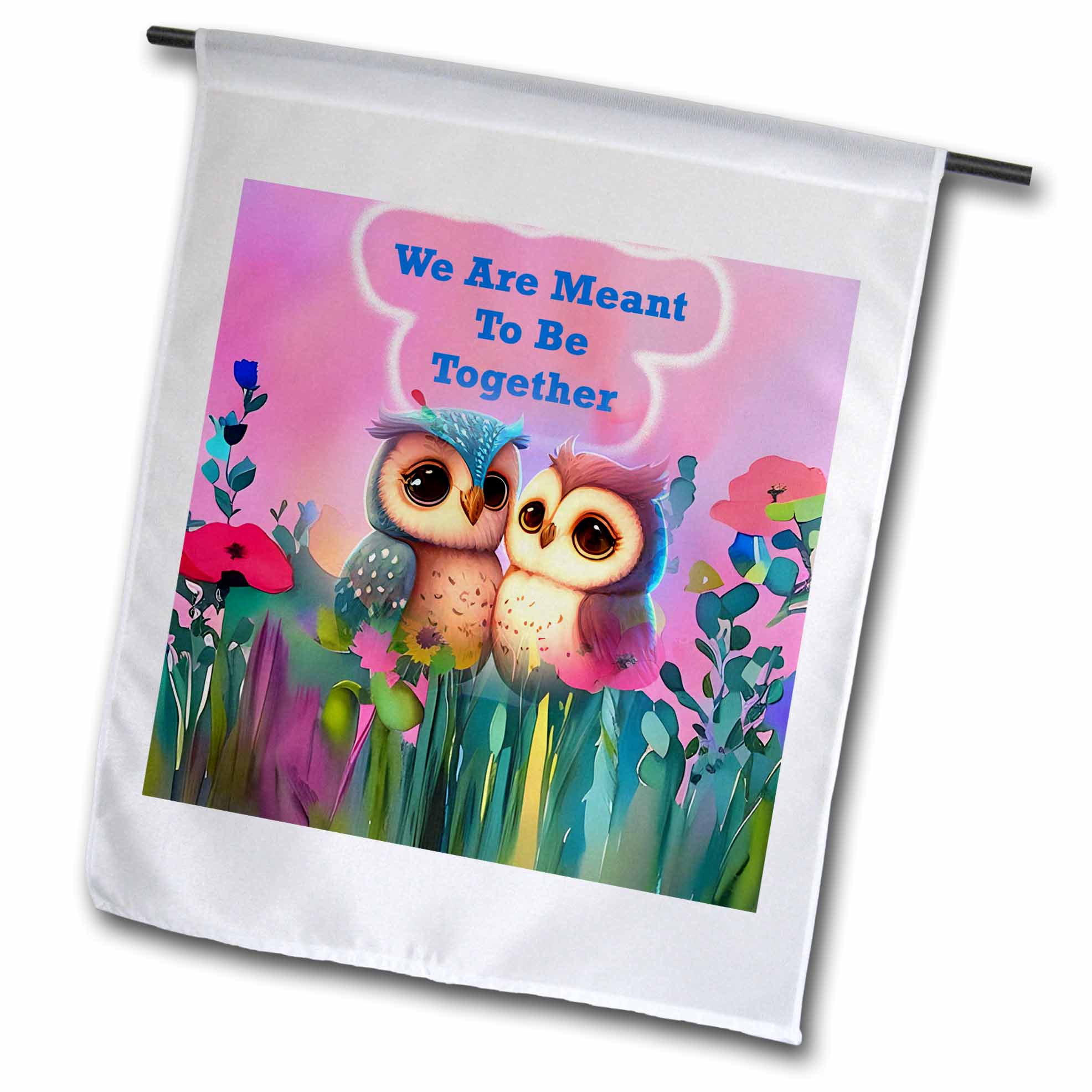 3dRose Two cute as can be owls in love and a message to show it - Flags (fl-384435)