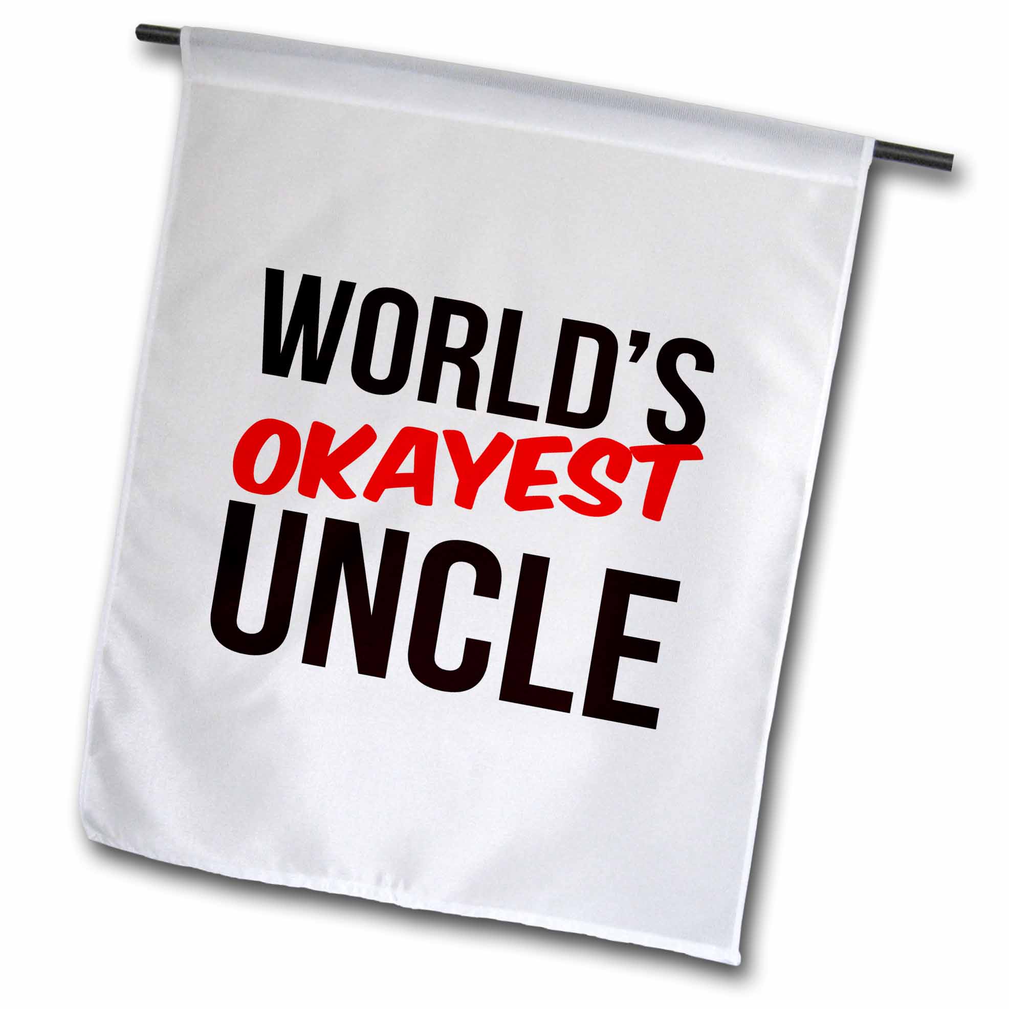 Worlds Okayest Uncle Flag is a creative way to celebrate all year round by adding a little bit of color and fun. Made of 100% single-ply semi-opaque polyester with the image printed on one side; a lighter image will be visible on the backside. Hang using a pole, on the wall, ceiling, banister, and door or anywhere you feel the need to add a splash of color. Hanging hardware/pole not included.