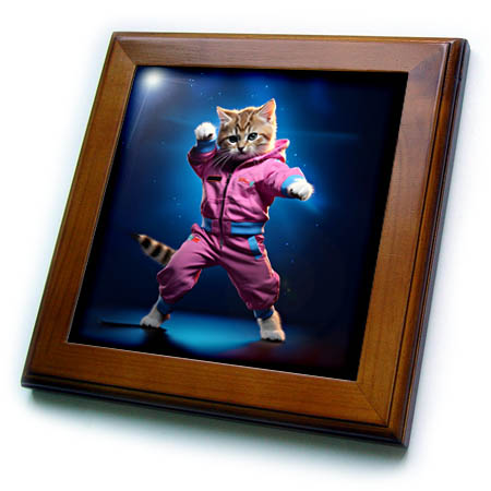 3dRose 80s Gym instrcutor Kitten Ready for Some Exercise - Framed Tiles (ft-385462)
