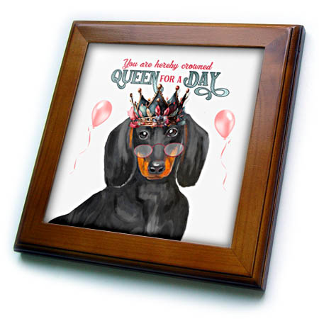 3dRose A Doxie or Dachshund Dog with a Funny Queen for a Day Theme - Framed Tiles (ft-382700)