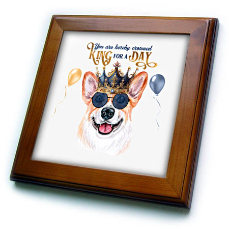 3dRose Adorable Pembroke Welsh Corgi Dog King for a Day in a Crown - Framed Tiles (ft-382695)