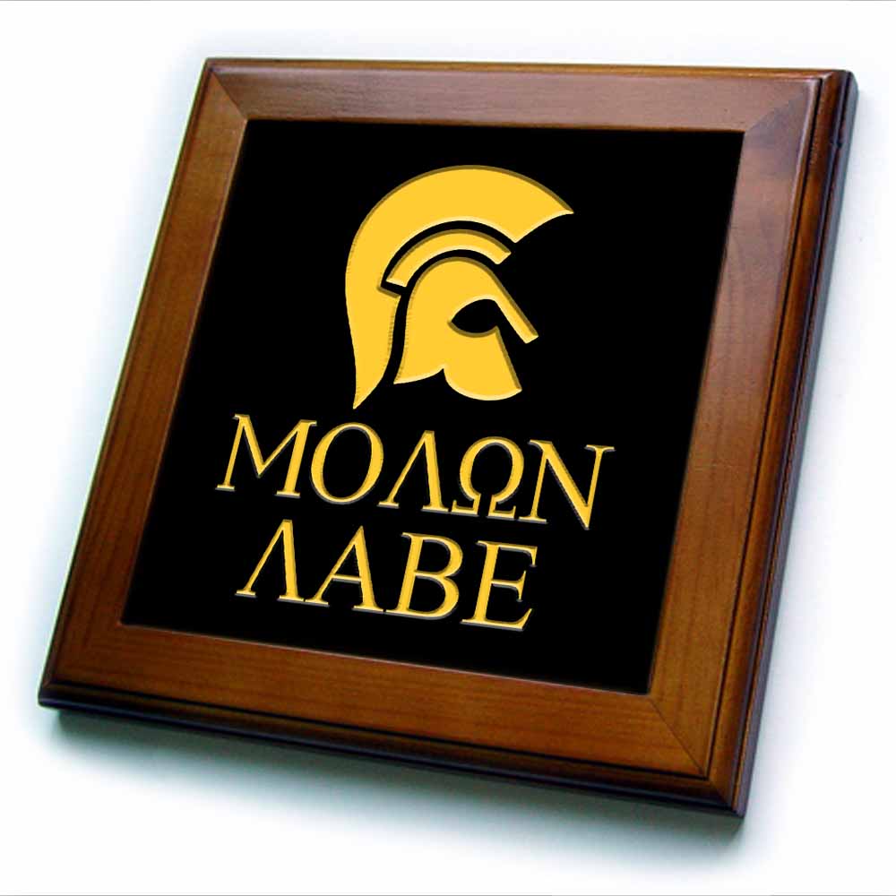 3dRose Ancient Greek Helmet. Molon Labe - Come and take Text. Yellow,... - Framed Tiles (ft_326156)