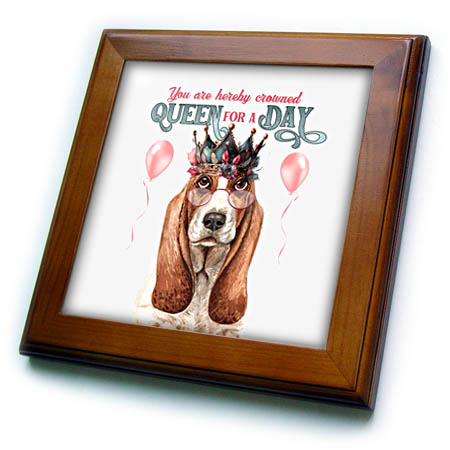 3dRose Basset Hound in a Crown Funny Queen for a Day Dog Lover - Framed Tiles (ft-382658)