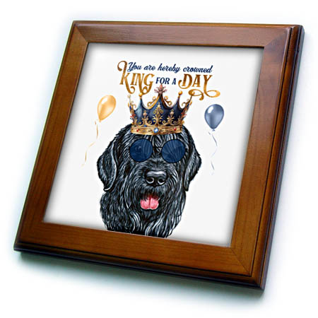 3dRose Black Russian Terrier Funny King for a Day Dog in a Crown - Framed Tiles (ft-382663)