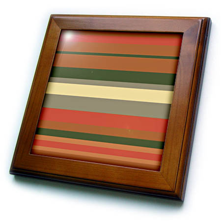 3dRose Brown Geen and Beige Horizontal Stripe Pattern - Framed Tiles (ft-382529)