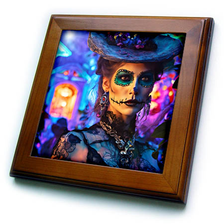 3dRose Cassie Peters Digital Art - Day of The Dead Woman - Framed Tiles (ft-385441)