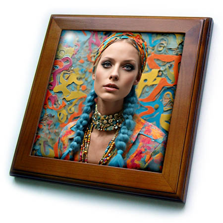 3dRose Cassie Peters Digital Art - Hippie Woman With Blue Hair - Framed Tiles (ft-385432)