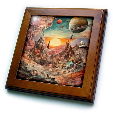 3dRose Cassie Peters Digital Art - Landscape on Another Planet Fantasy - Framed Tiles (ft-385442)