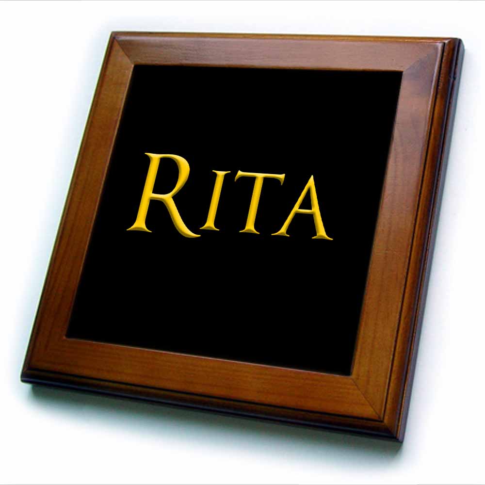 3dRose Rita Common Girl Name in The USA. Yellow on Black Talisman - Framed Tiles (ft_326186)