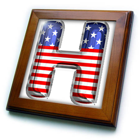 3dRose Stars and Stripes Monogram Initial H - Framed Tiles (ft-382489)